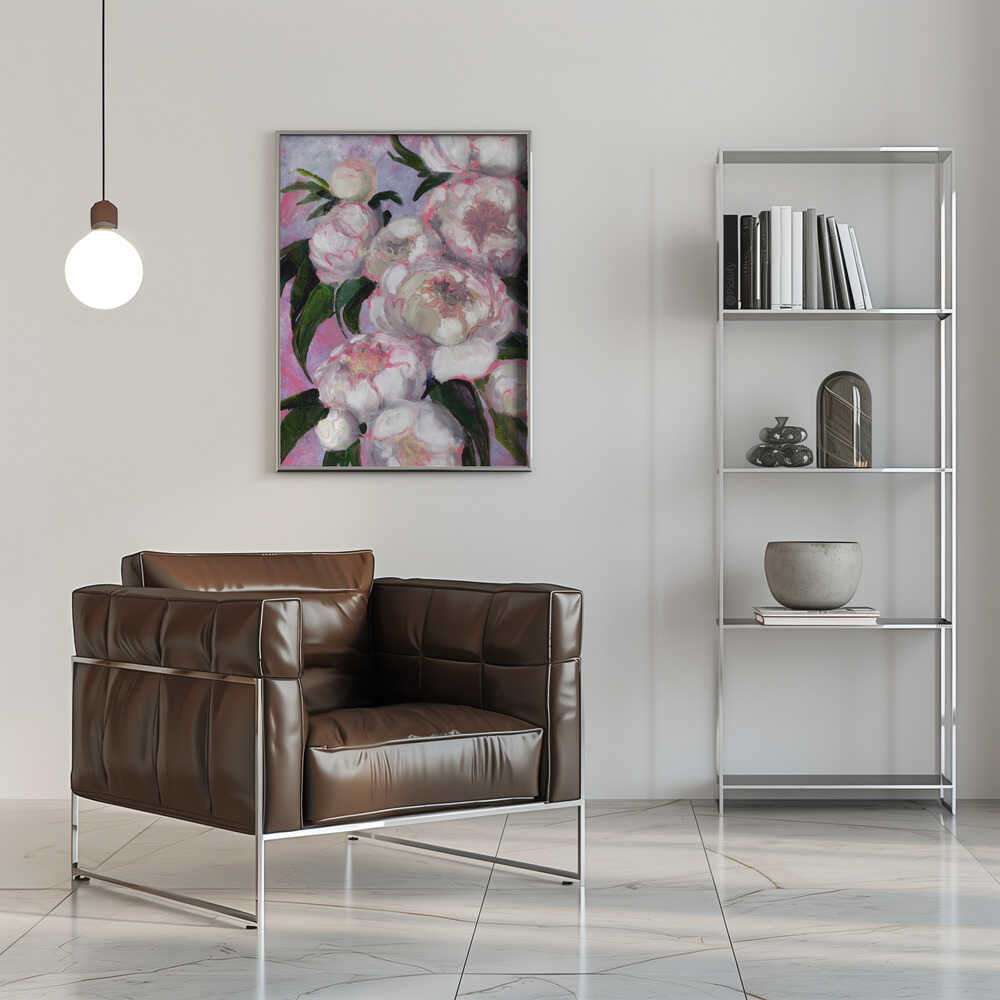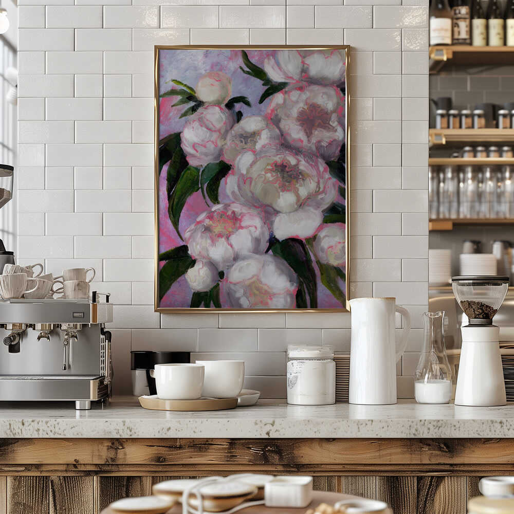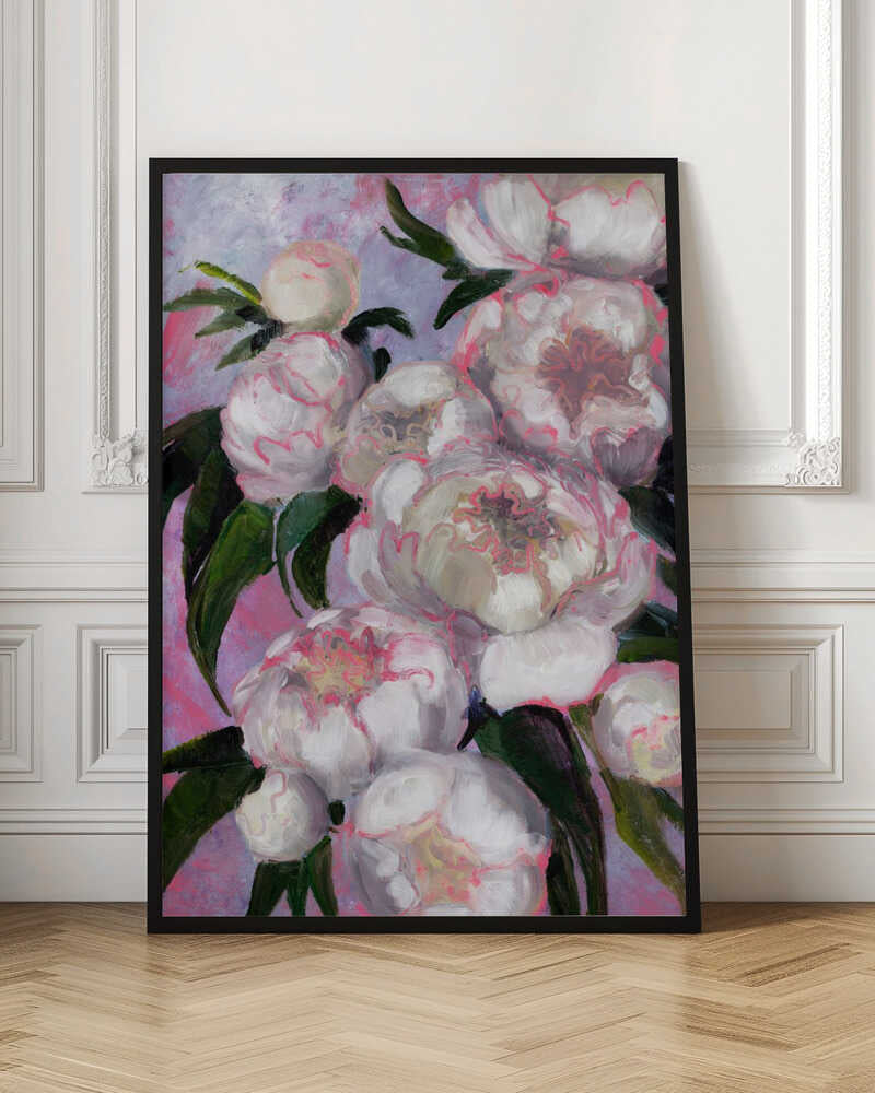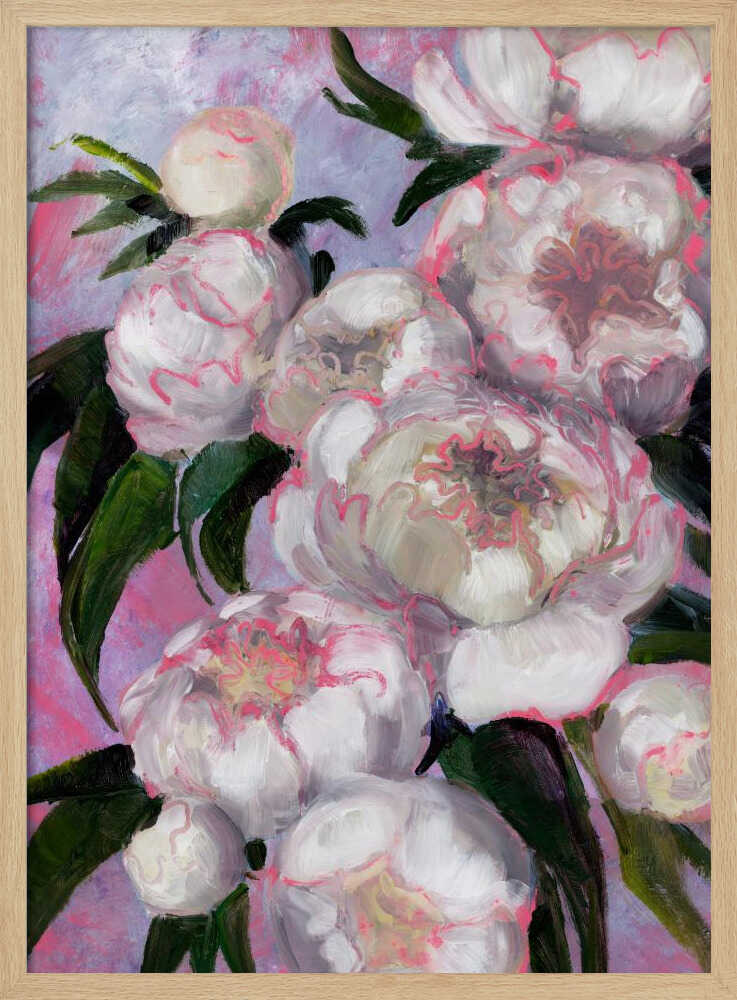 Explore our many print options for White Peonies With Pink Highlights by artist Rosana Laiz Blursbyai.