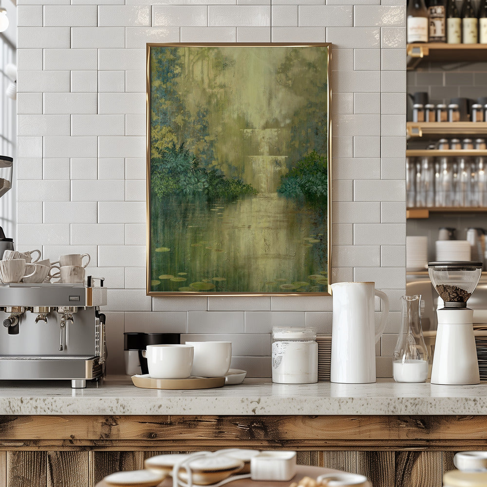 Explore our many print options for Green Pond By The Waterfall by artist Ekaterina Prisich.