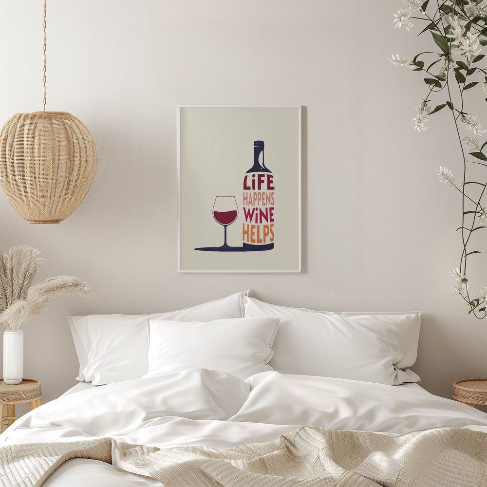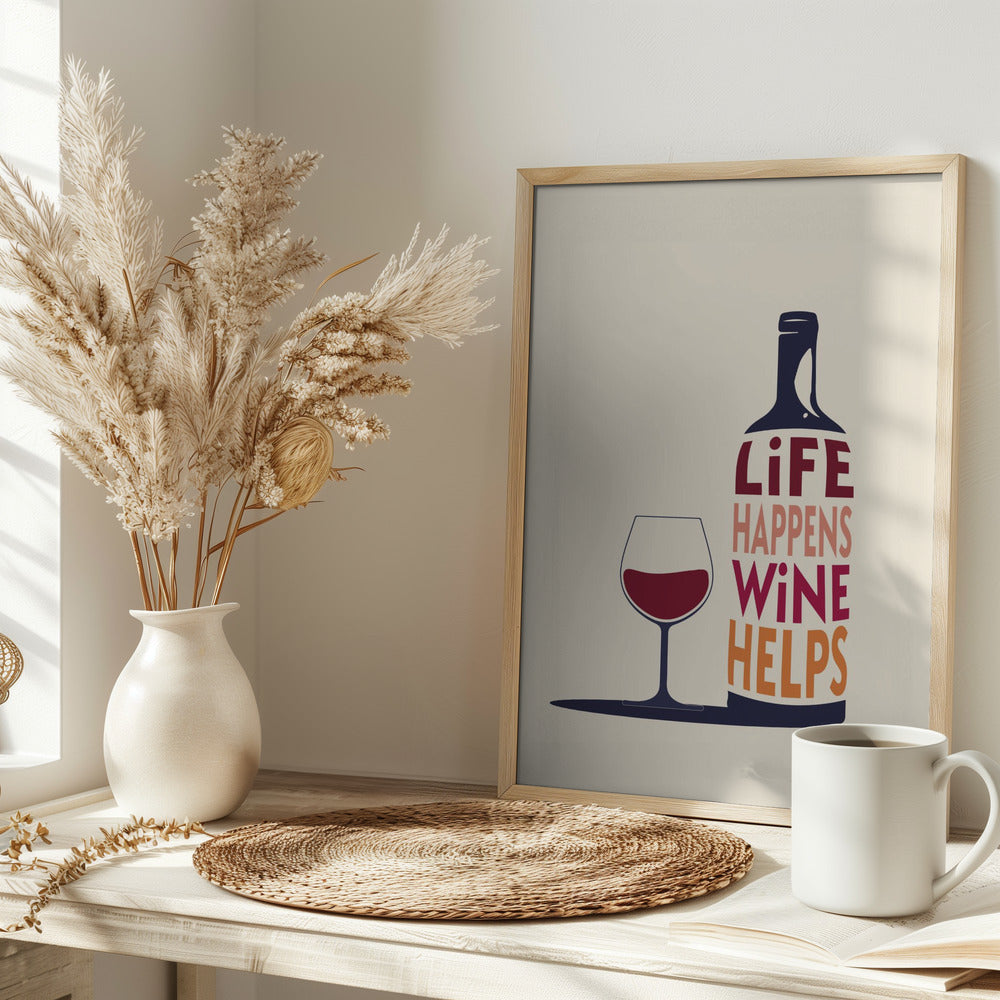 Explore our many print options for Life Happens, Wine Helps - Wine Quote by artist Rio Soléy.