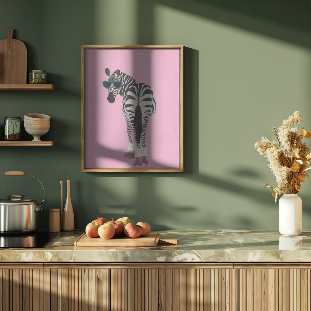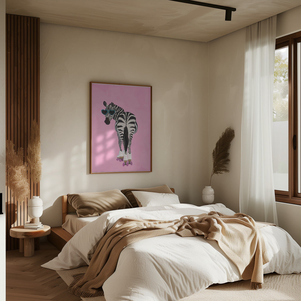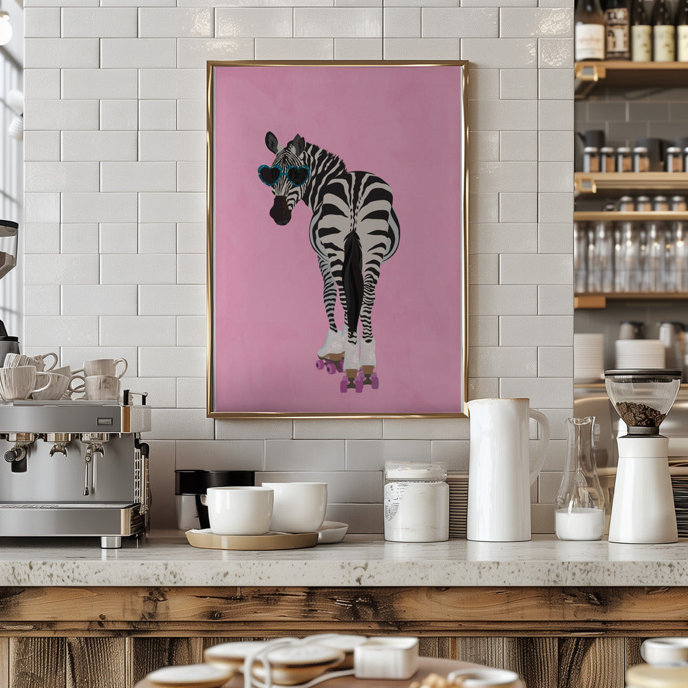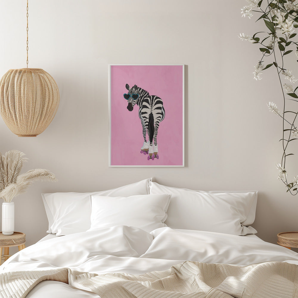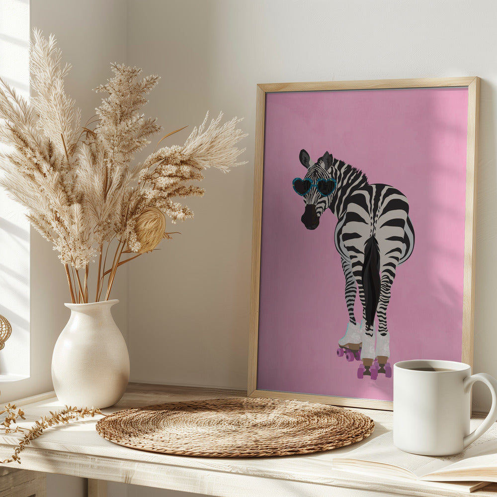 Explore our many print options for Rollerskating Zebra pink by artist Sarah Manovski.