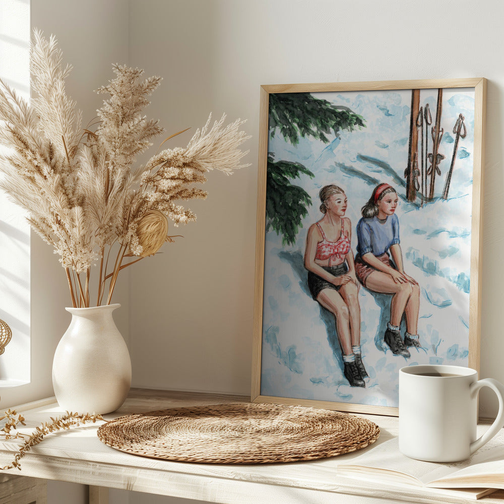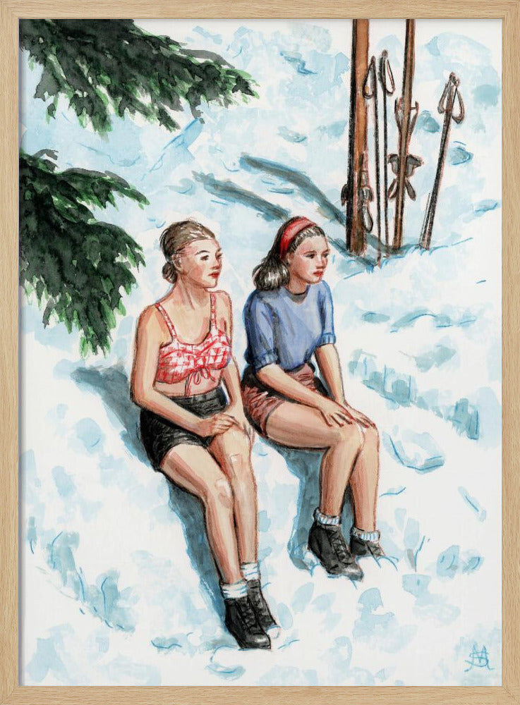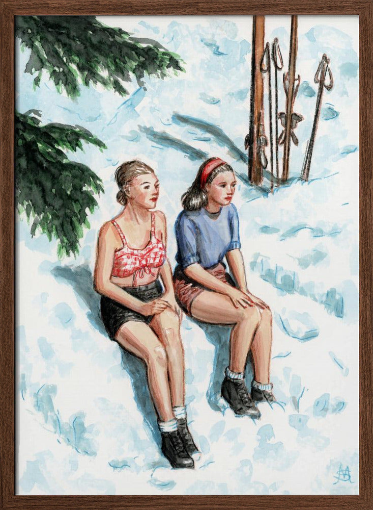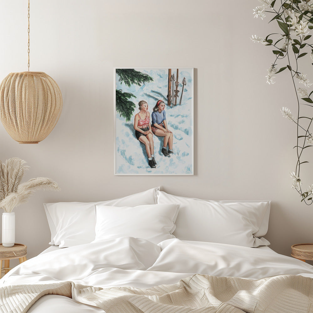 Explore our many print options for Two Skiers Sunbathing by artist Sarah Morrissette.