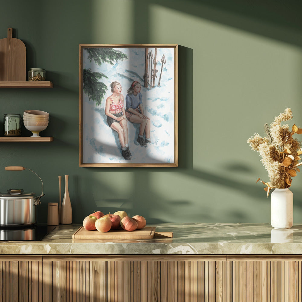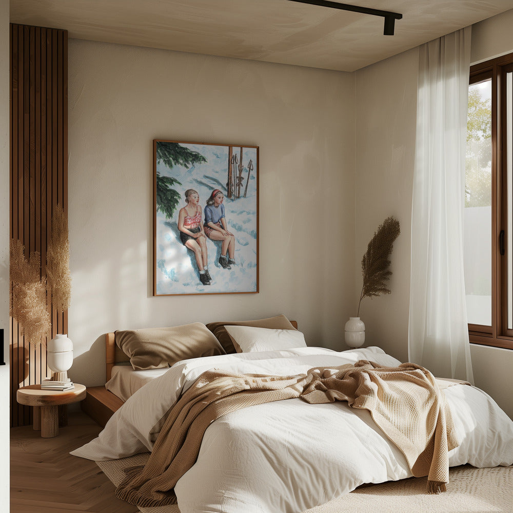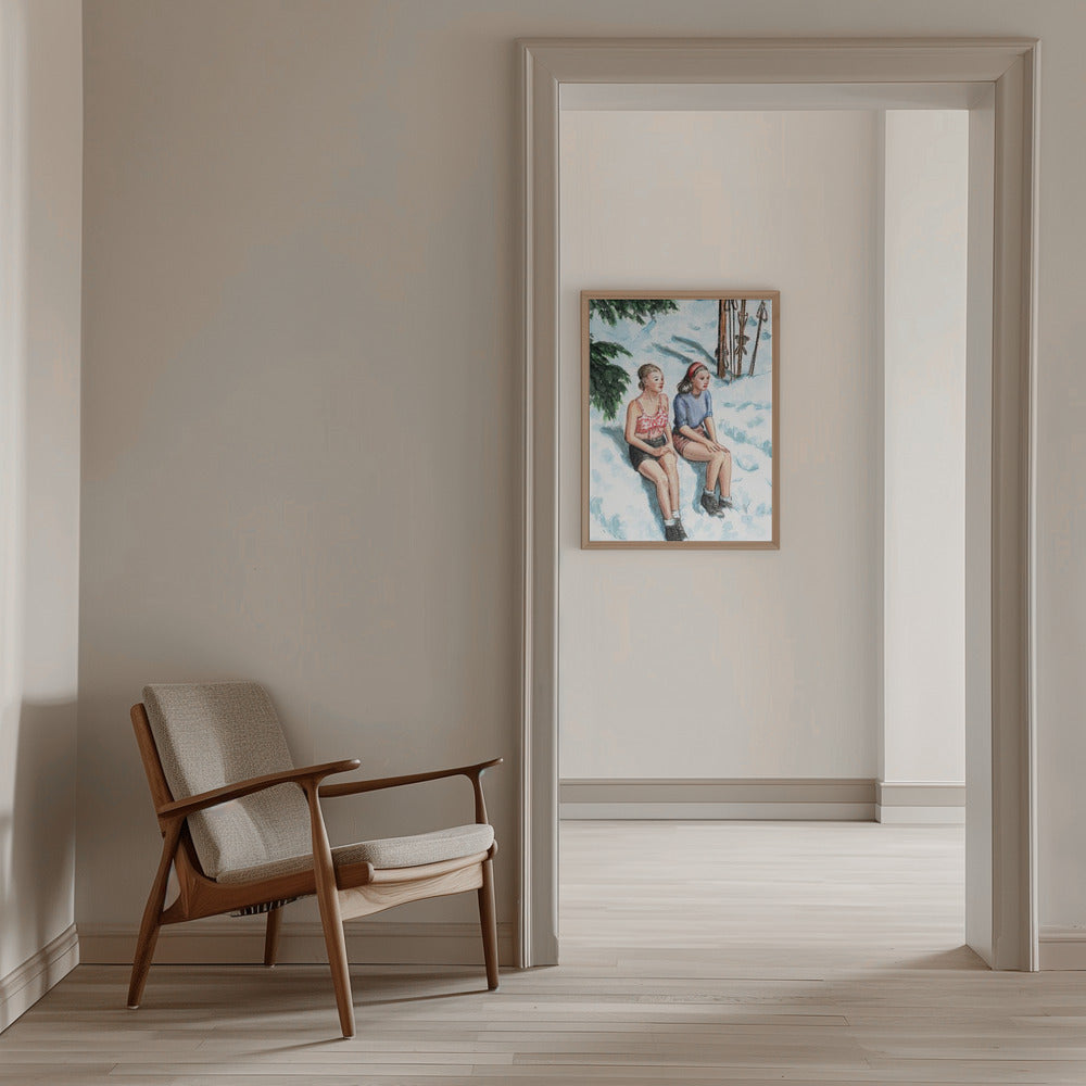Explore our many print options for Two Skiers Sunbathing by artist Sarah Morrissette.