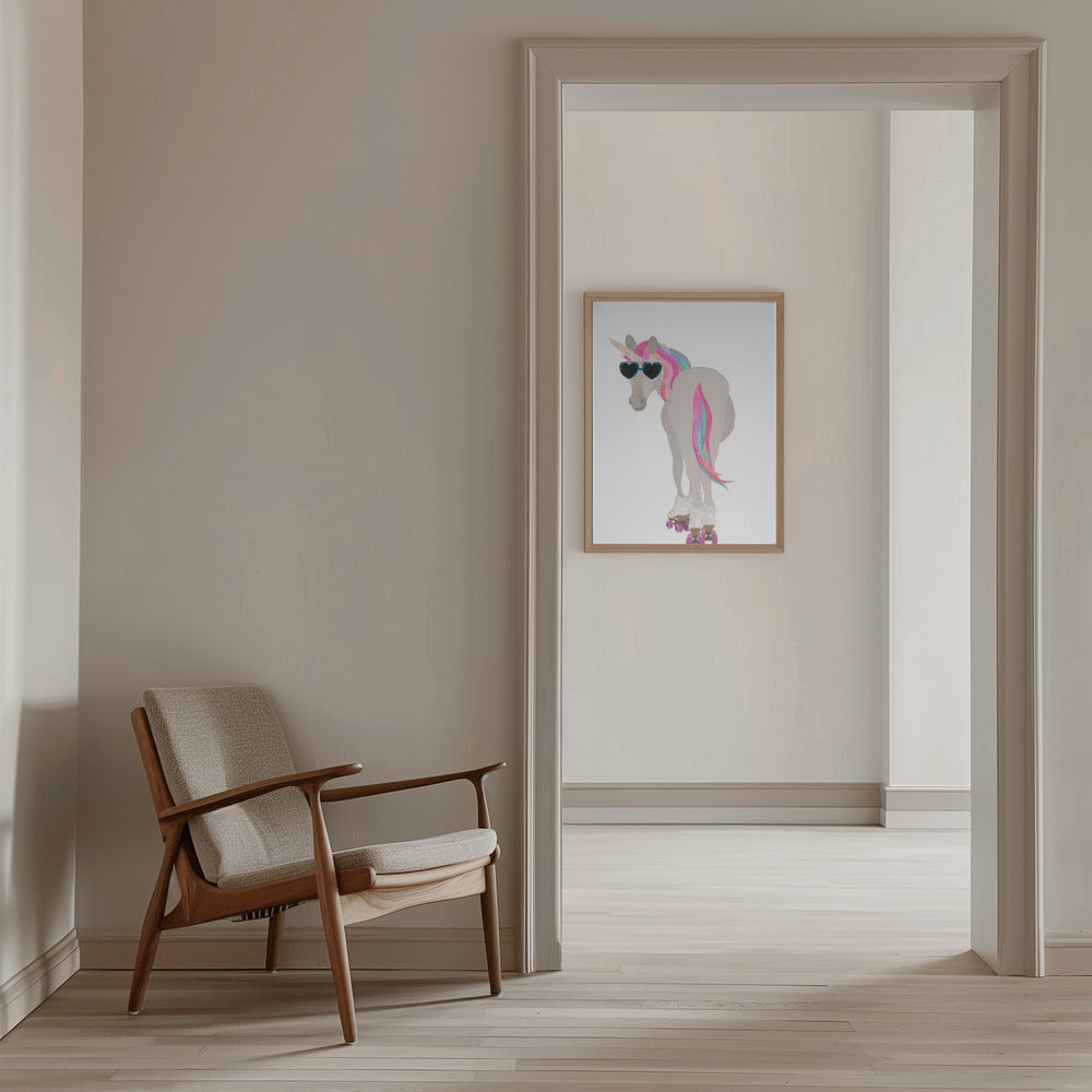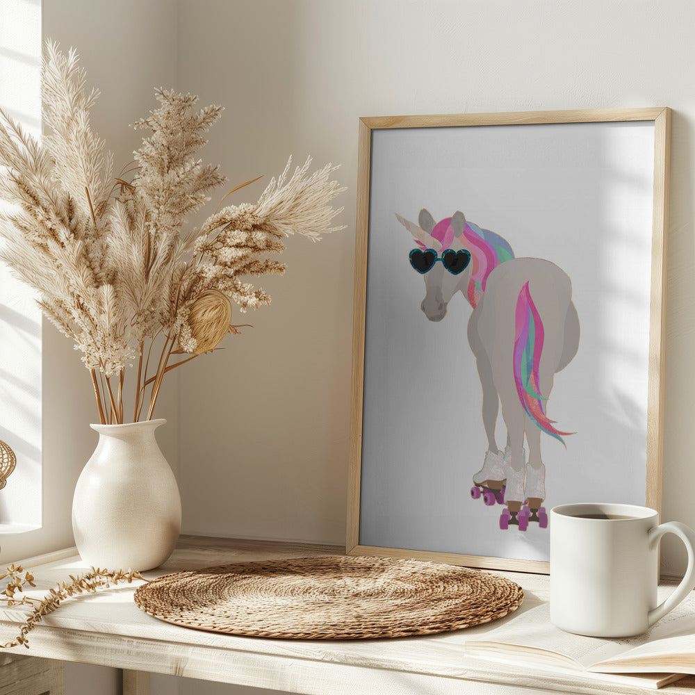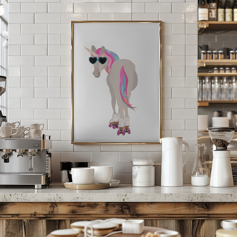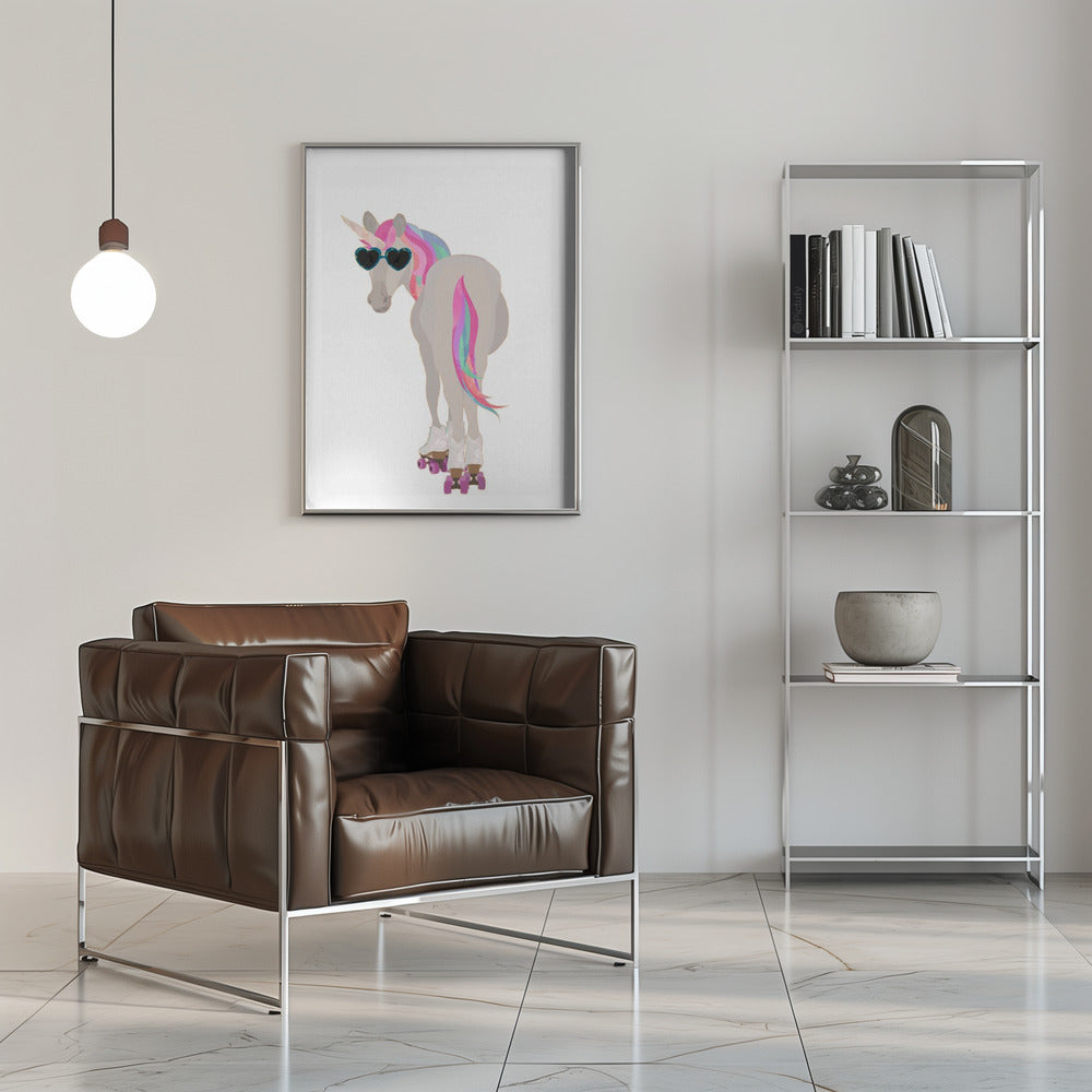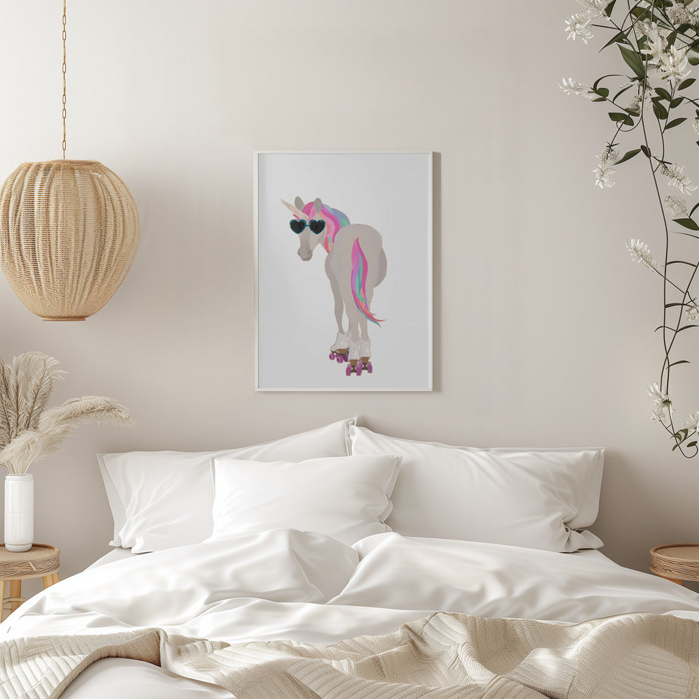 Explore our many print options for Unicorn rollerskating white by artist Sarah Manovski.