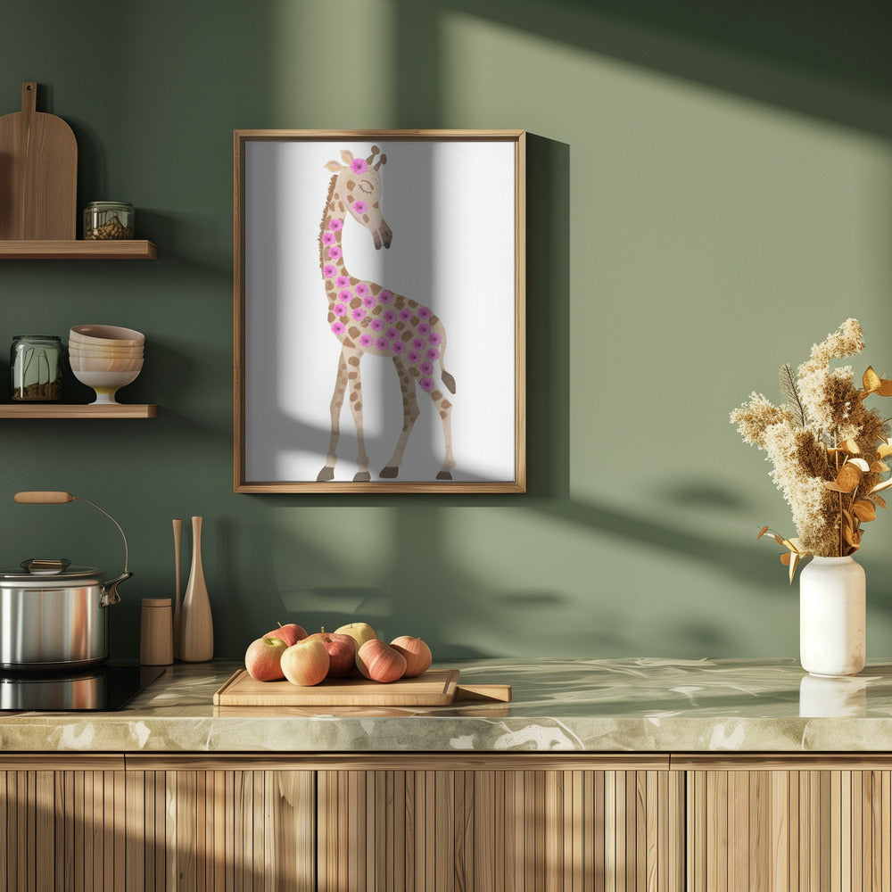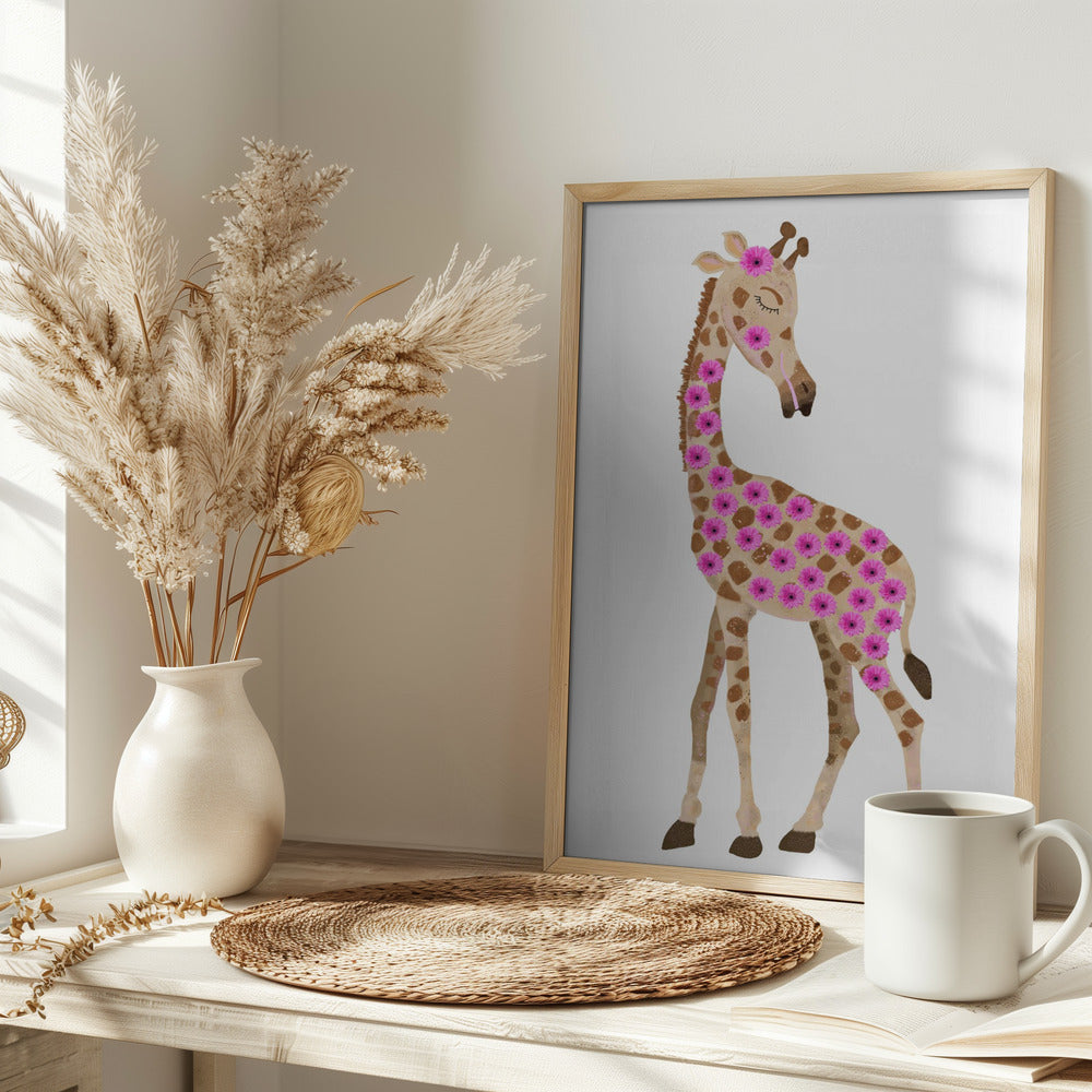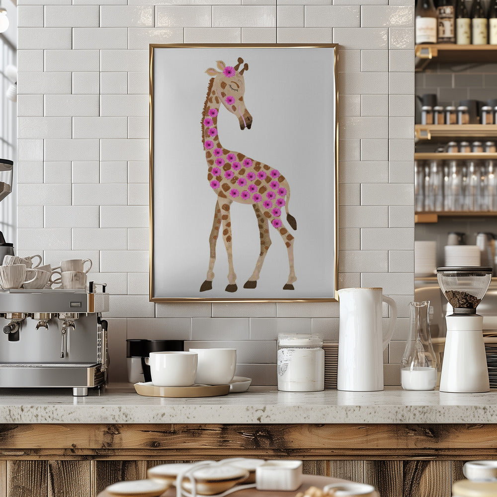 Explore our many print options for Giraffe with Flowers by artist Lynnda Rakos.