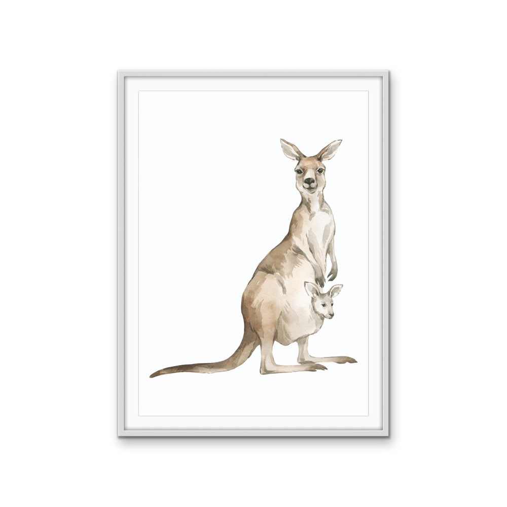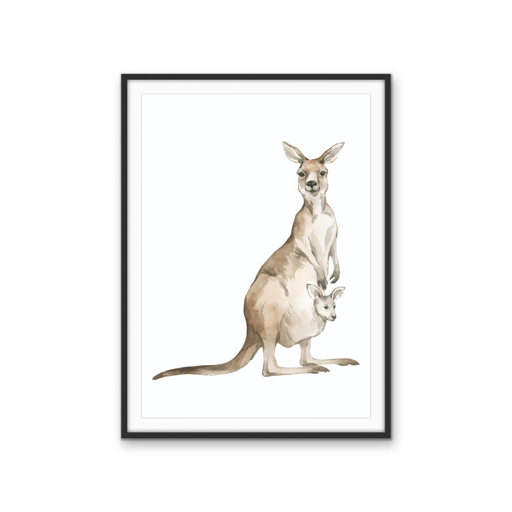 Kangaroo Standing Nursery Sketch - Australian Native Animal Stretched Canvas or Wall Art Print
