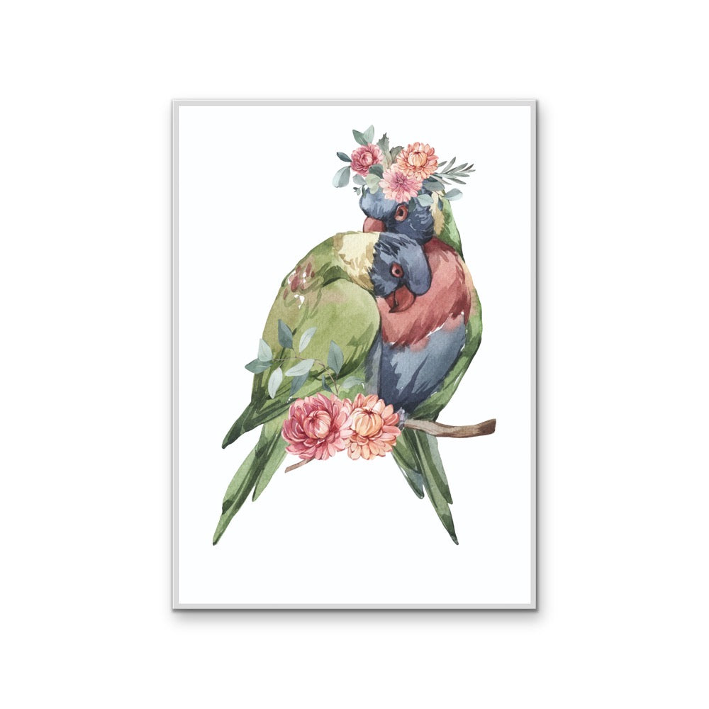 Lorikeets Flower Crown - Australian Native Animal Stretched Canvas or Wall Art Print