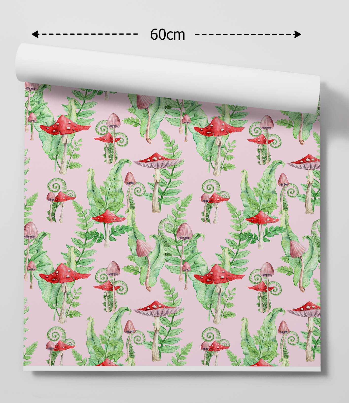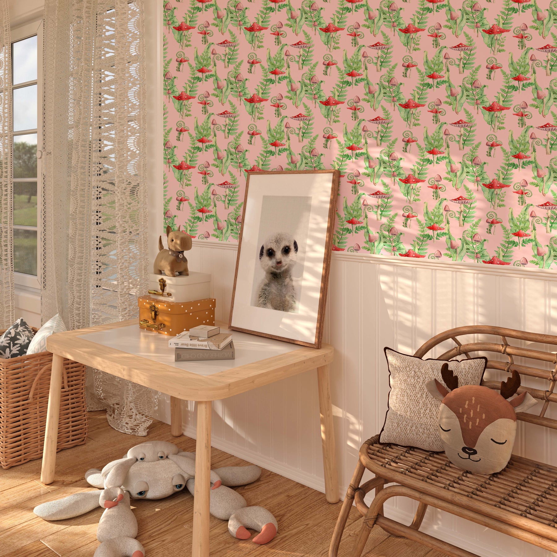 'Mushroom Garden' in Pink - Kids Nursery Removable Wallpaper