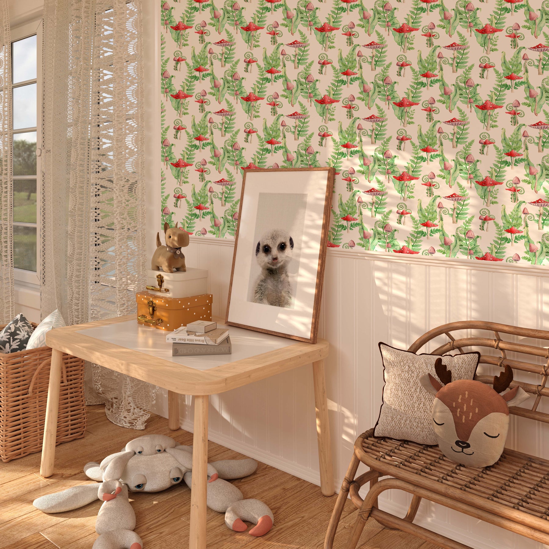 'Mushroom Garden' in White - Kids Nursery Removable Wallpaper