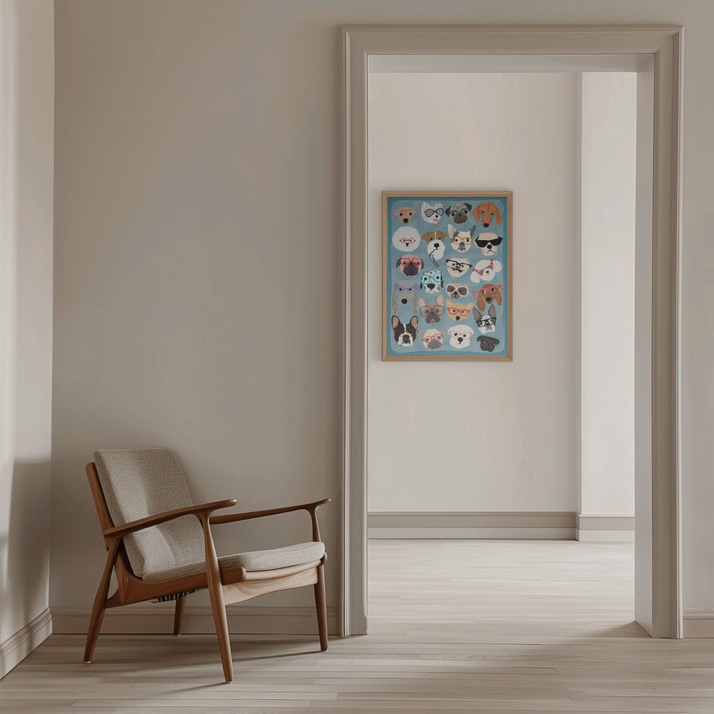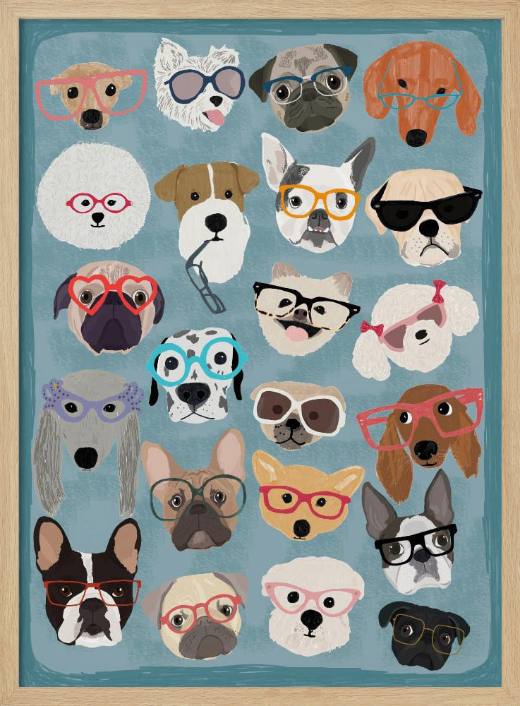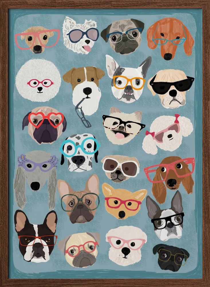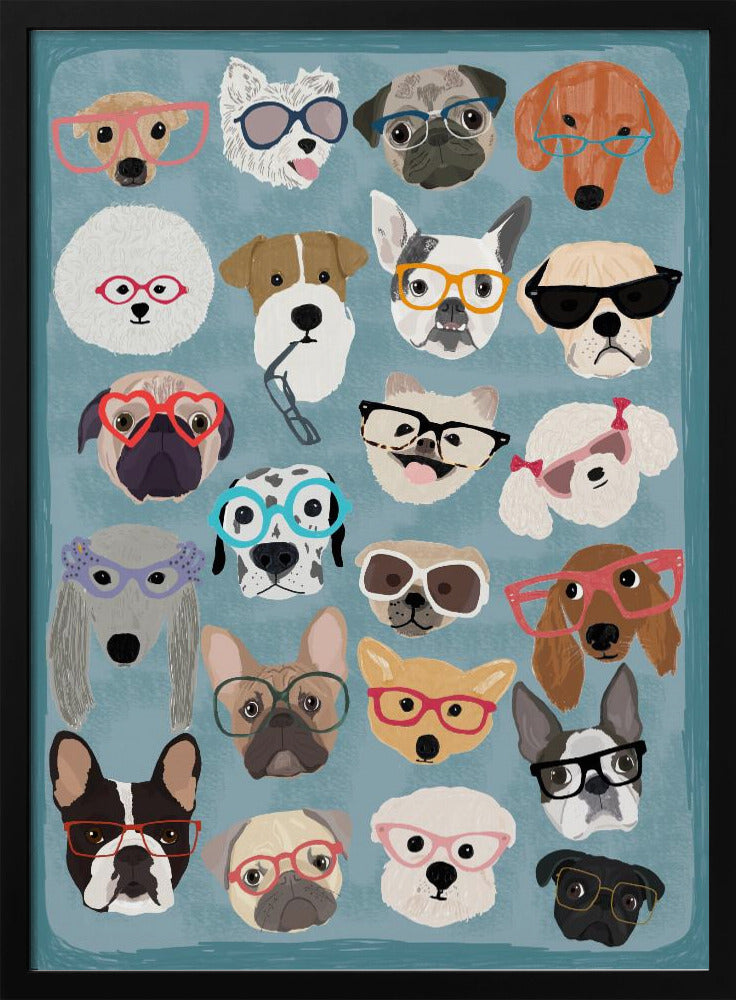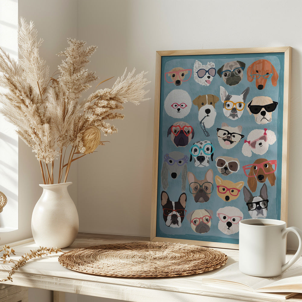 Explore our many print options for Puzzle Dogs In Glasses by artist Hanna Melin.