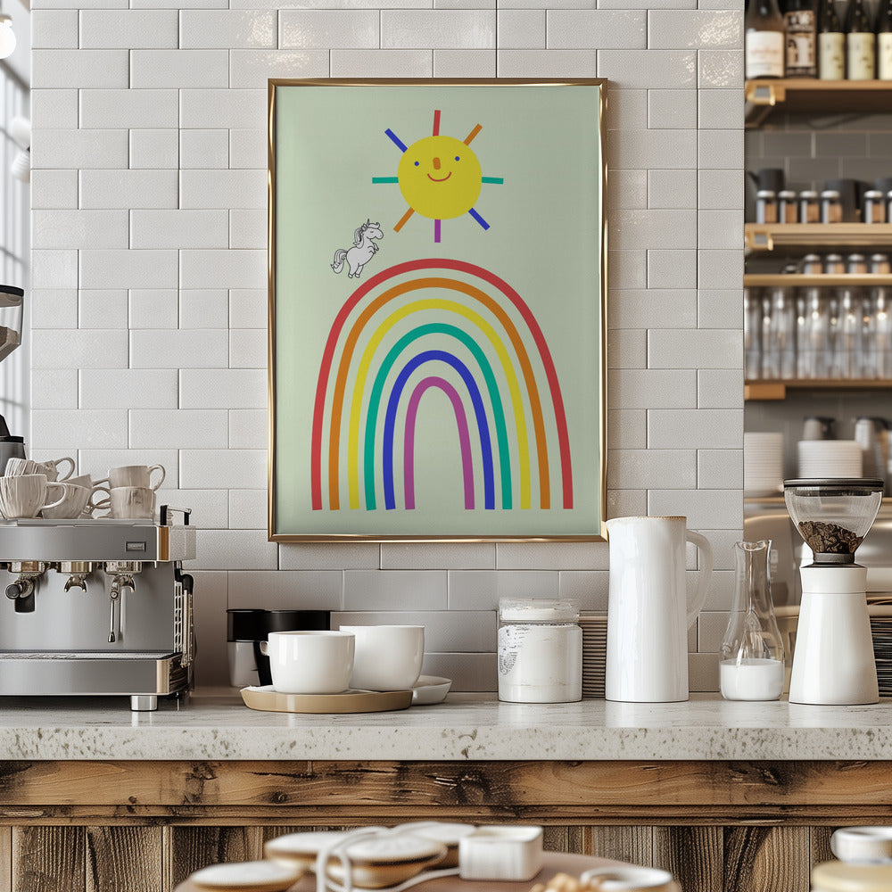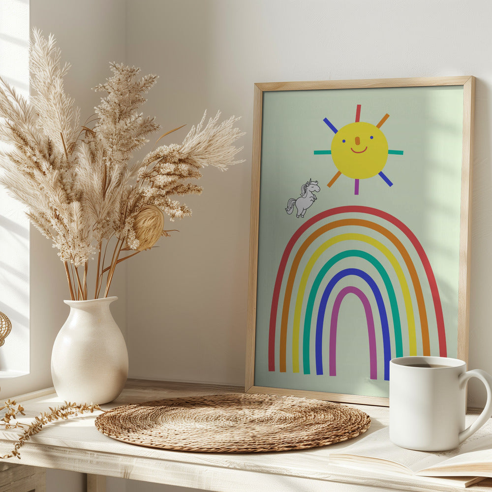 Explore our many print options for Rainbow Sun and Unicorn by artist Little Dean.