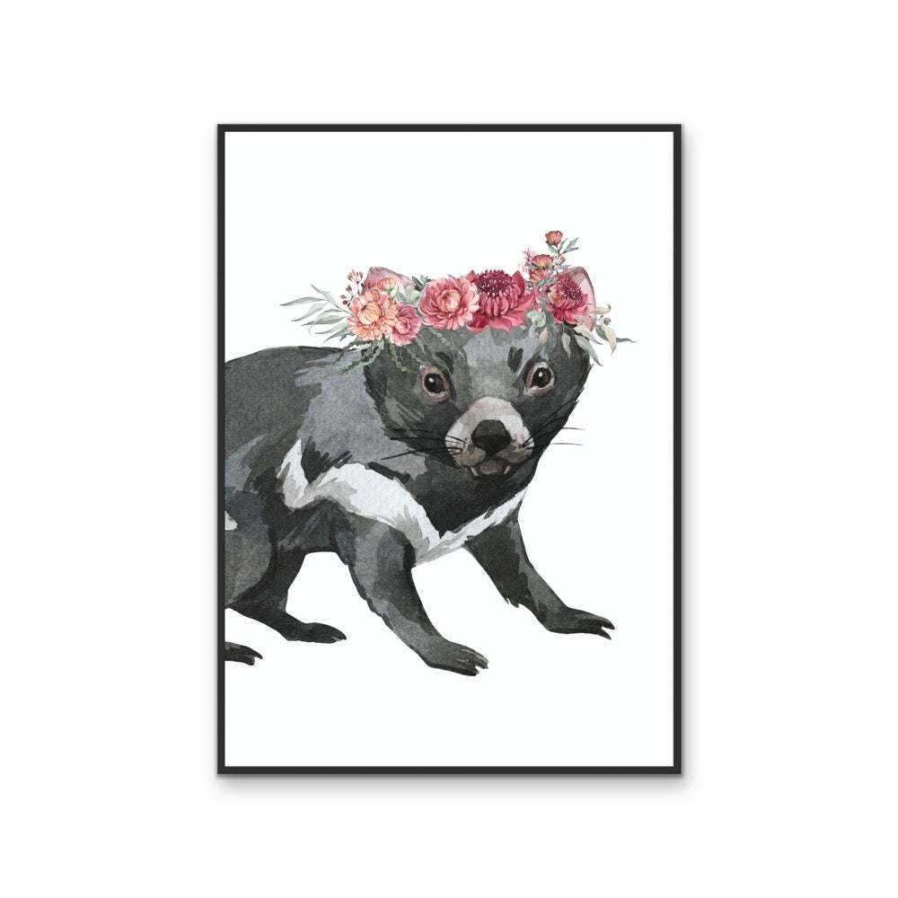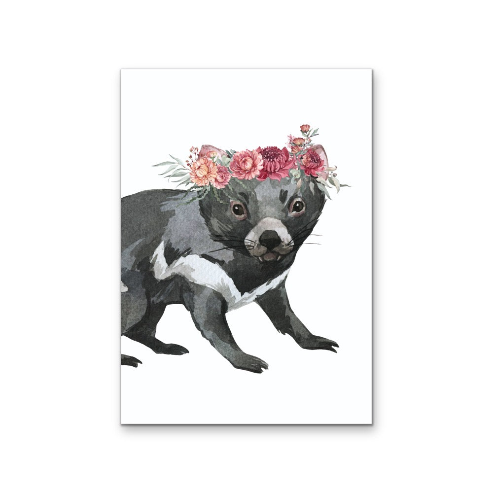 Tassie Devil Flower Crown - Australian Native Animal Stretched Canvas or Wall Art Print