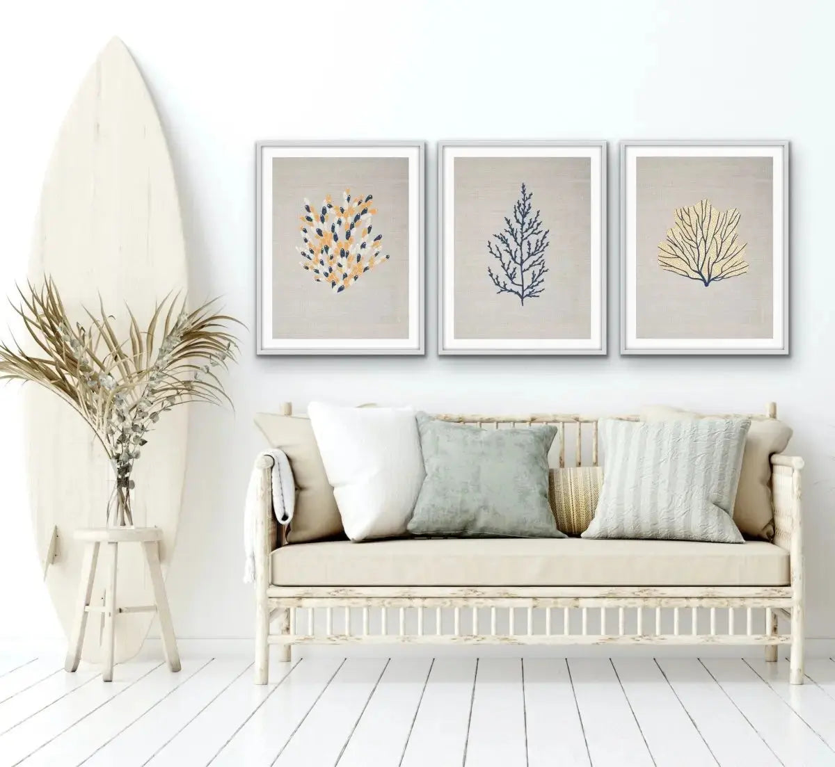 This set of three cute blue coral prints come as prints, printed on quality paper and in standard sizes so you can easily pick up frames to match your decor.