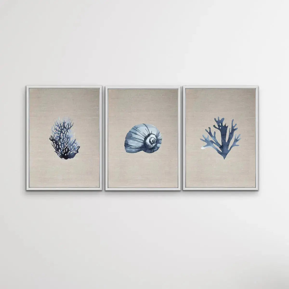 This set of three cute blue coral prints come as prints, printed on quality paper and in standard sizes so you can easily pick up frames to match your decor.