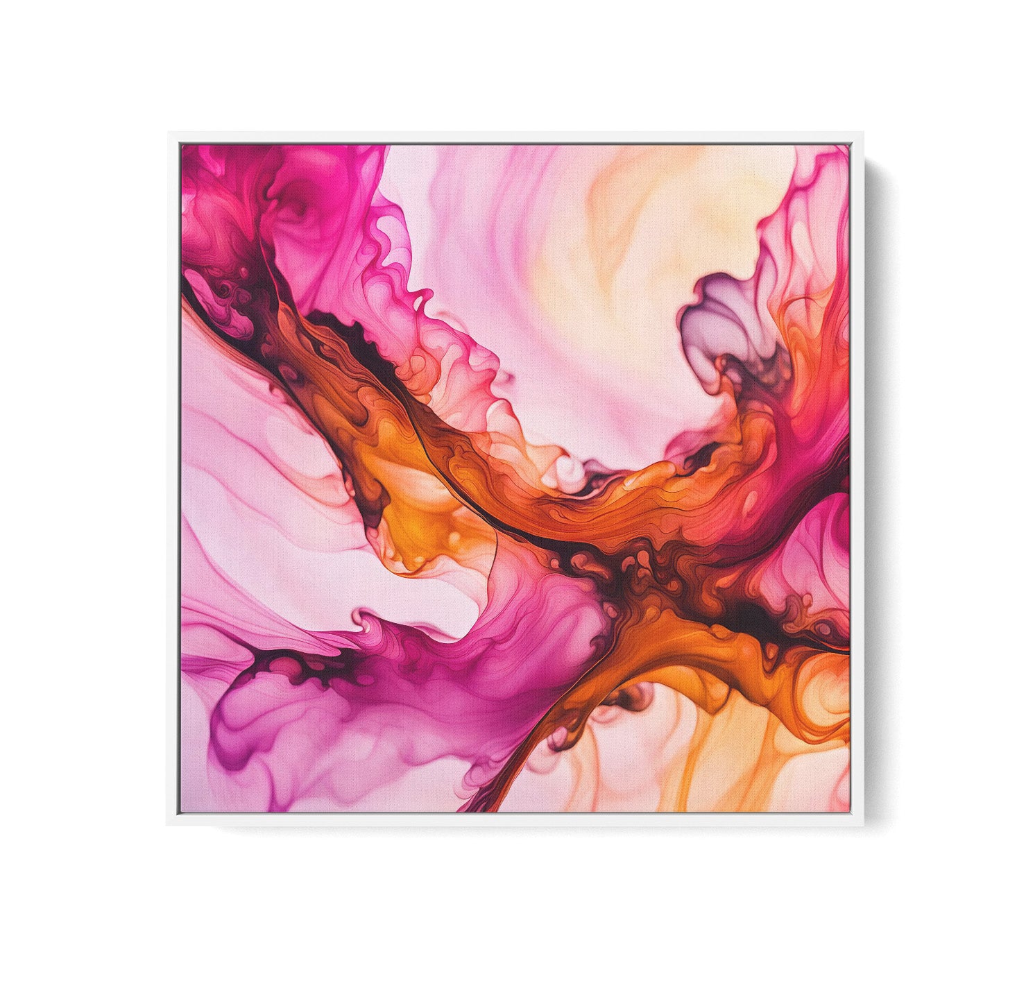 A colourful and fun abstract artwork in tones of pink and orange, Chasm will bring movement and joy to your space.