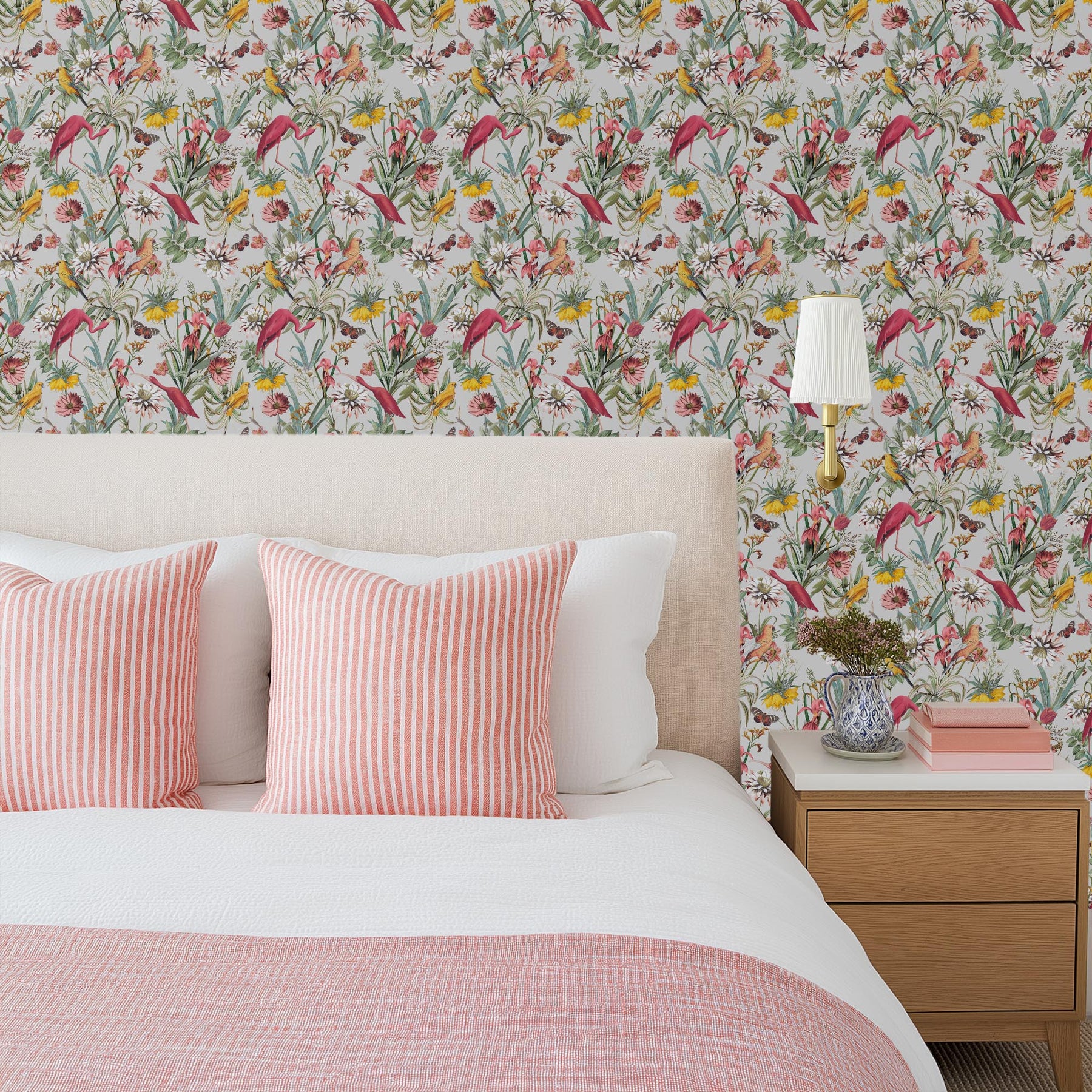Flamingo Dance - Coloured Flamingo & Bird Peel and Stick Wallpaper