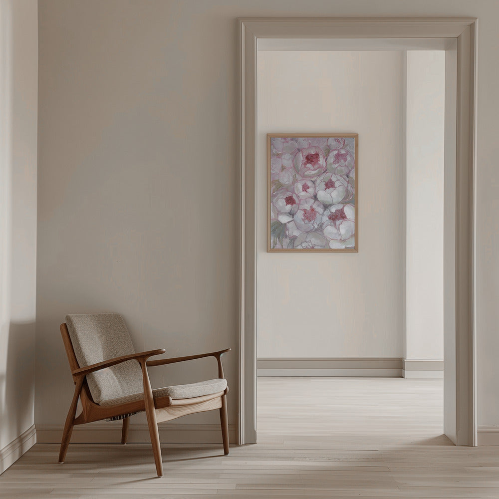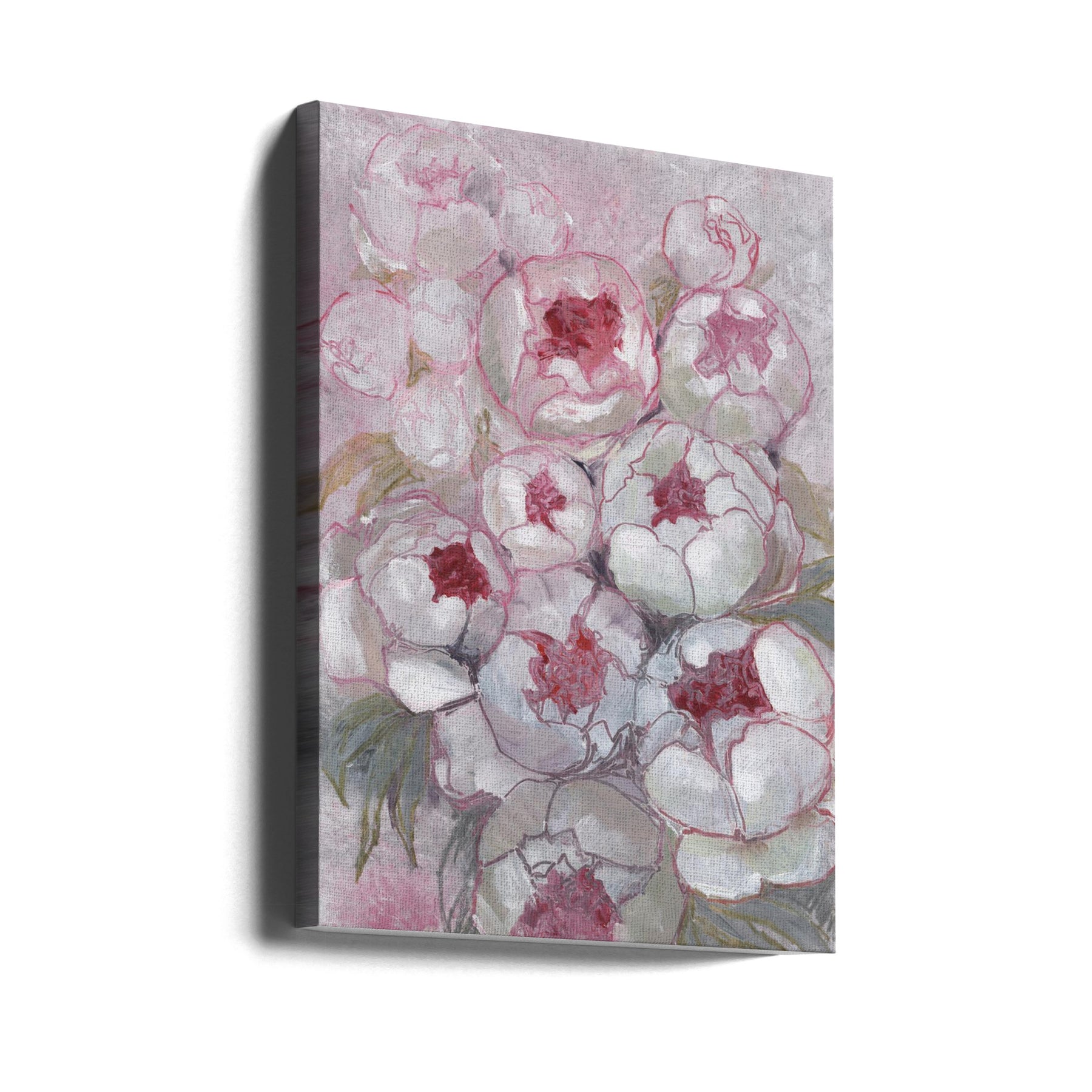 Explore our many print options for Nuria bouquet of peonies in pink by artist Rosana Laiz Blursbyai.