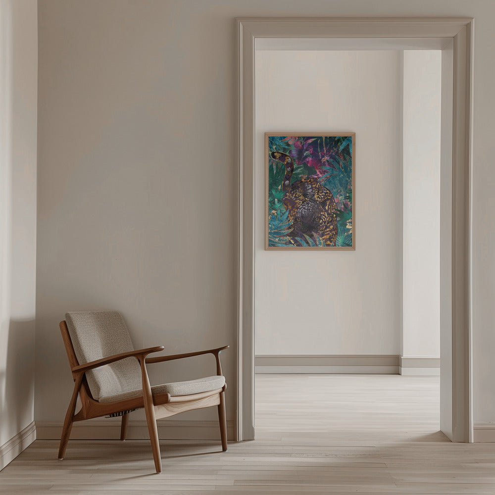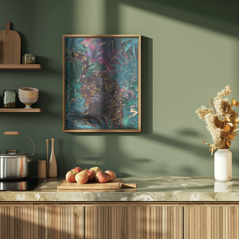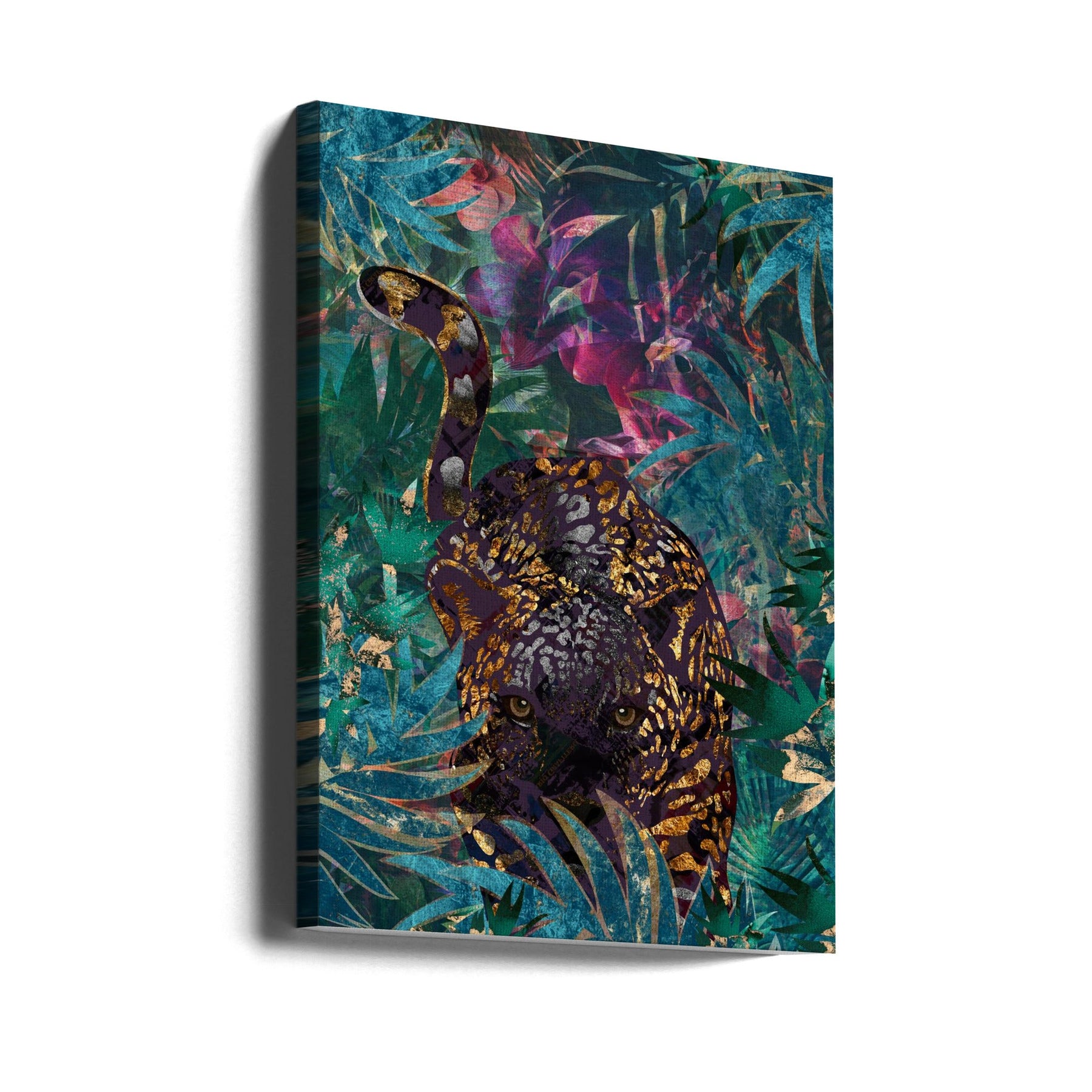 Explore our many print options for Black gold tropical jungle jaguar by artist Sarah Manovski.