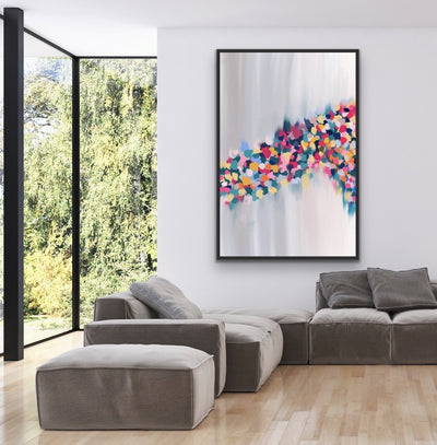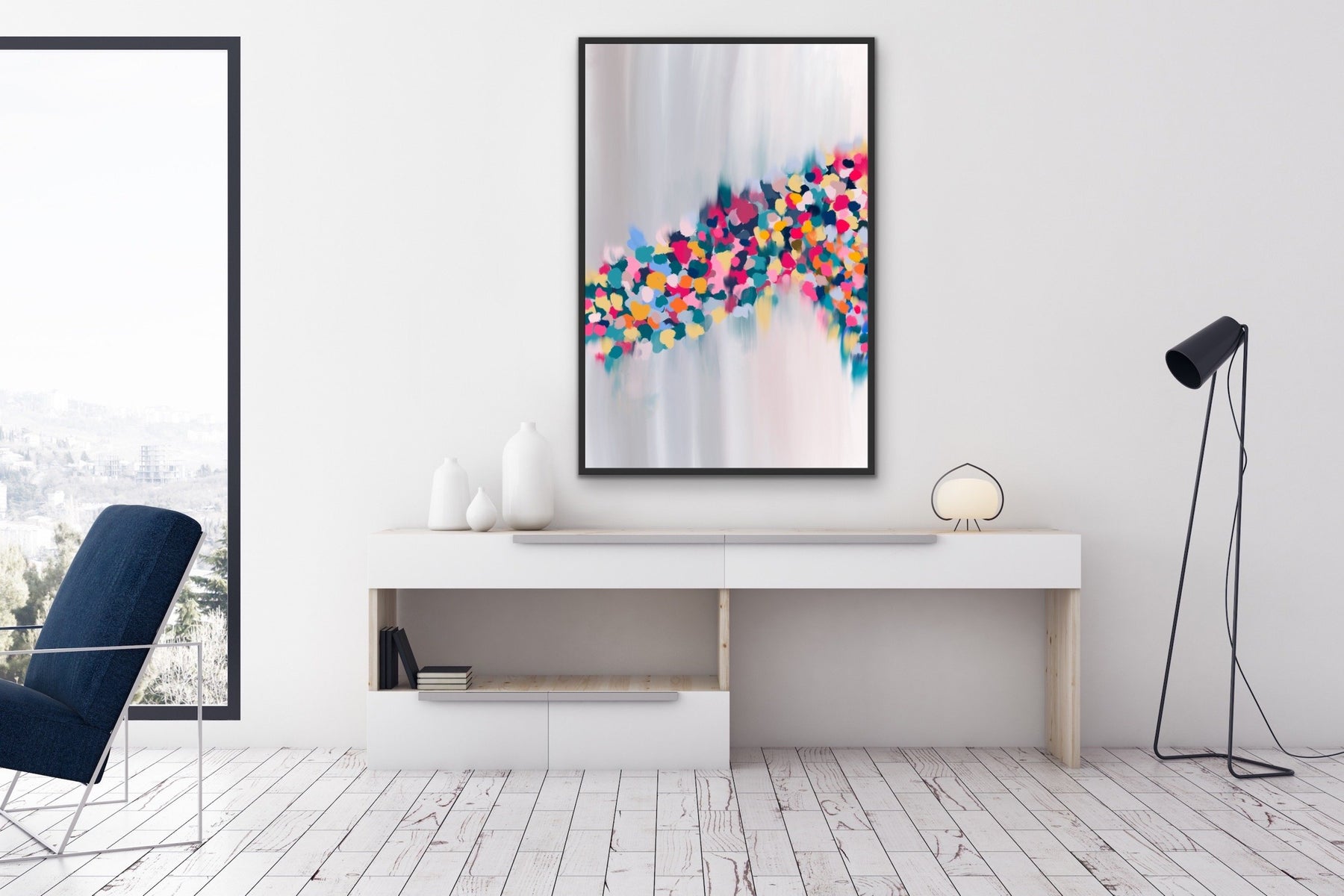 Flower Field is a limited edition reproduction of an original abstract artwork. This beautiful bright wall artist perfect for any lover of springtime, bright colours, and eye catching abstracts.