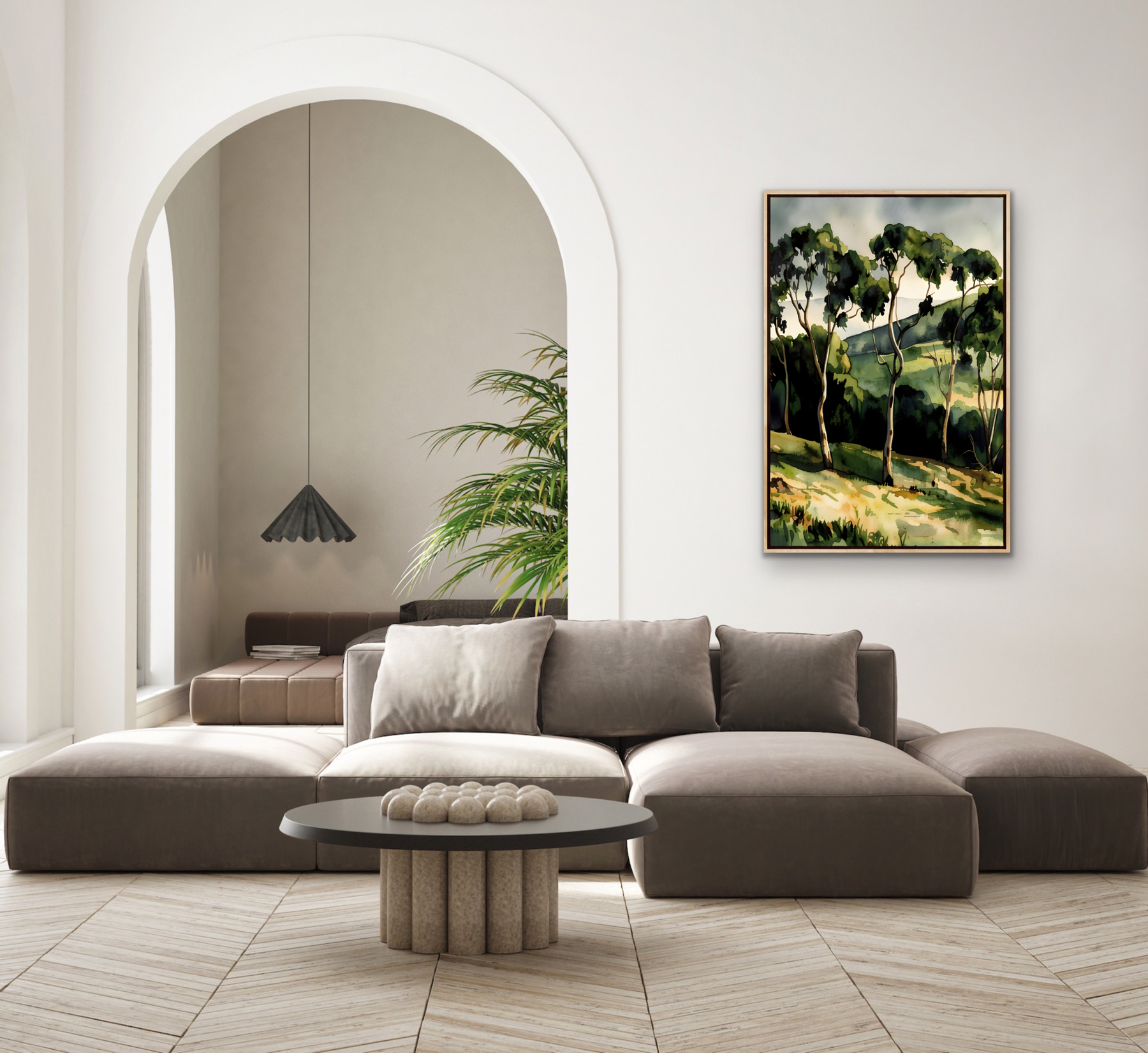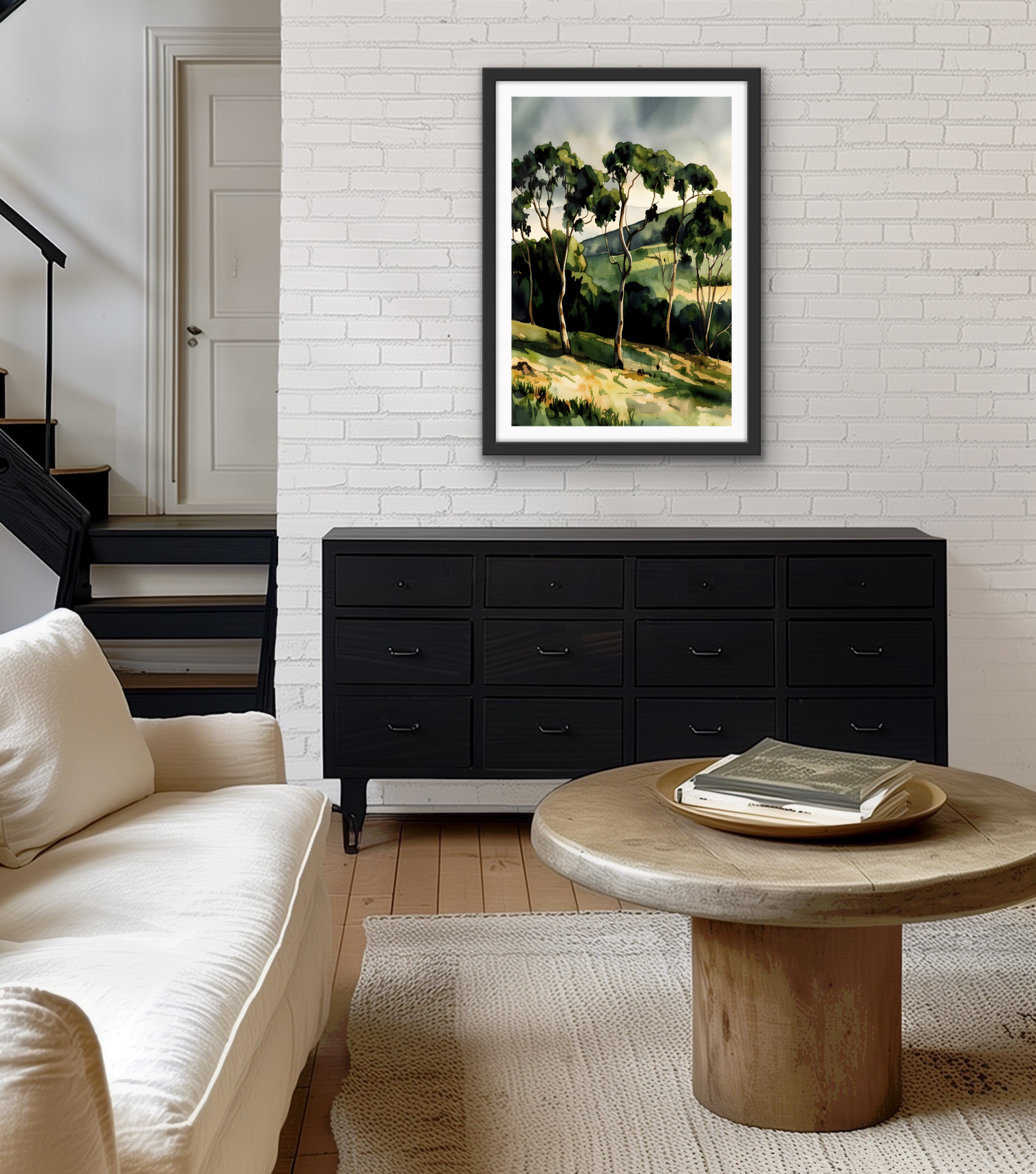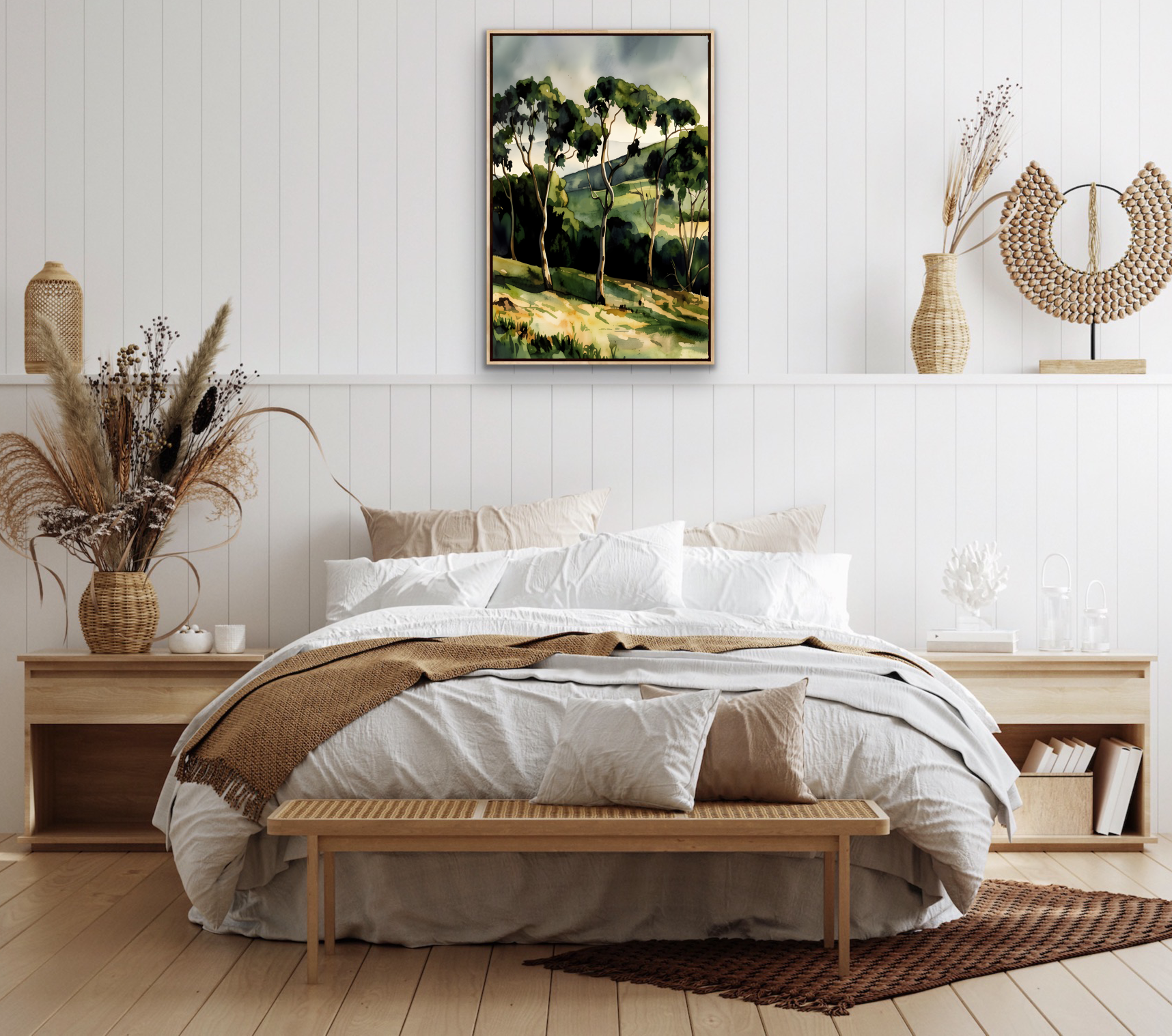 A gorgeous waterercolour-style artwork featuring the rich tones of an Australian country landscape after rain.
