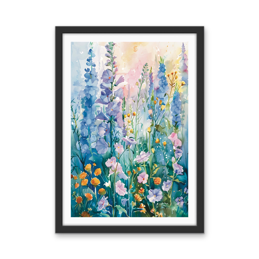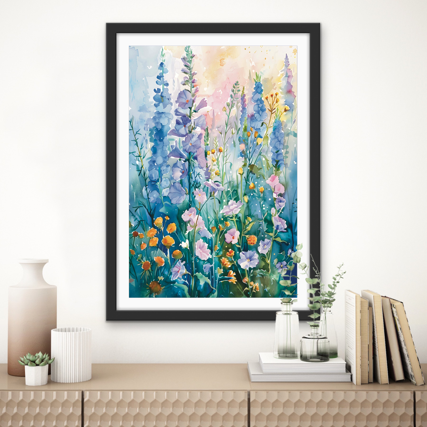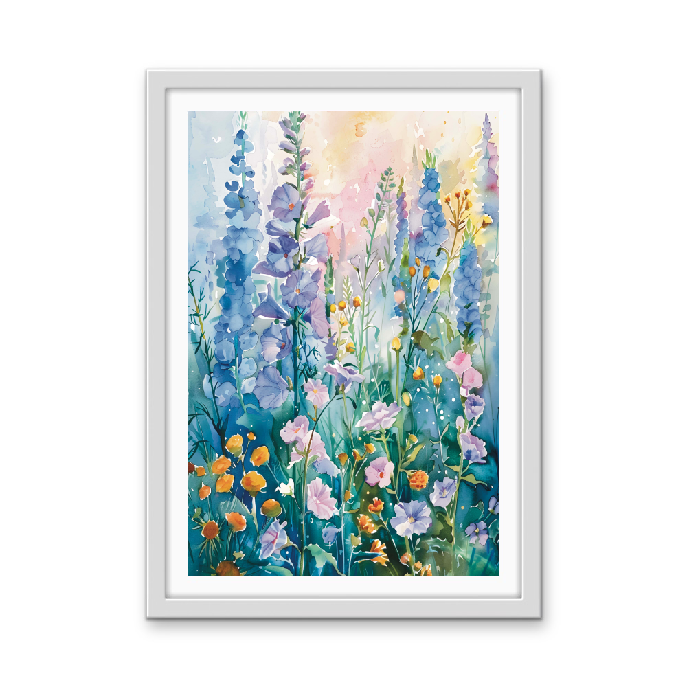 Explore our many different options for 'Wild Flora', a colourful floral watercolour print in a field day dream.