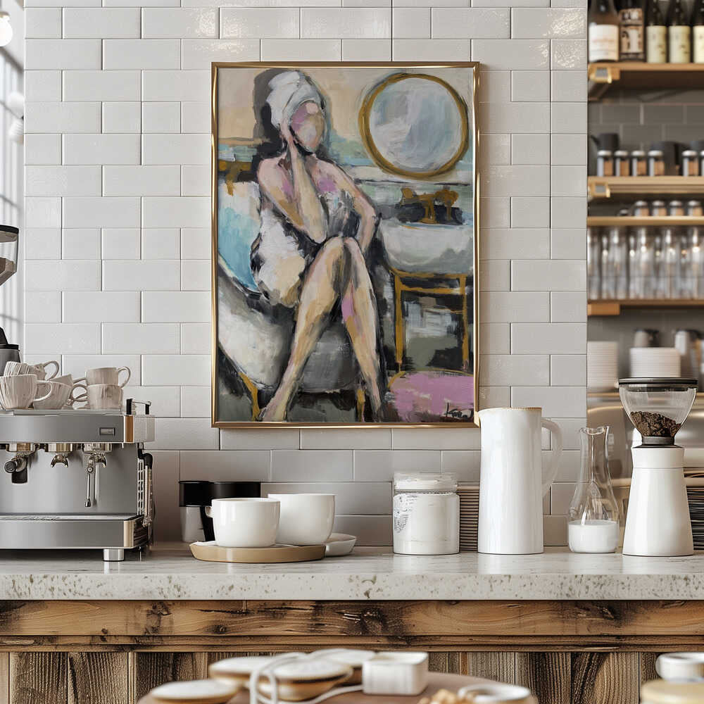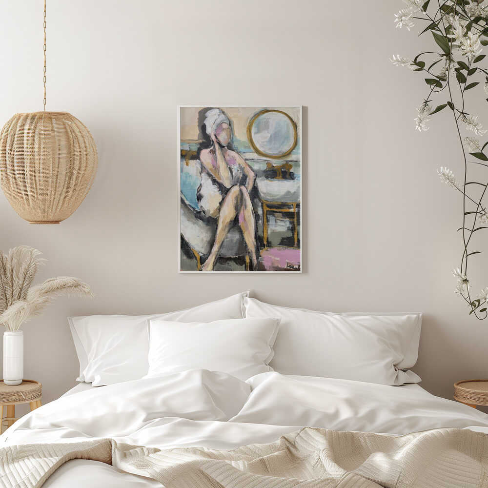 Bathroom Babe by Ivy Green Illustrations- Stretched Canvas Print or Framed Fine Art Print - Artwork