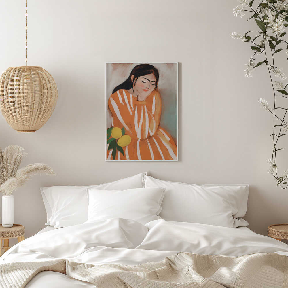 Pensive Woman Striped Dress - Stretched Canvas, Poster or Fine Art Print