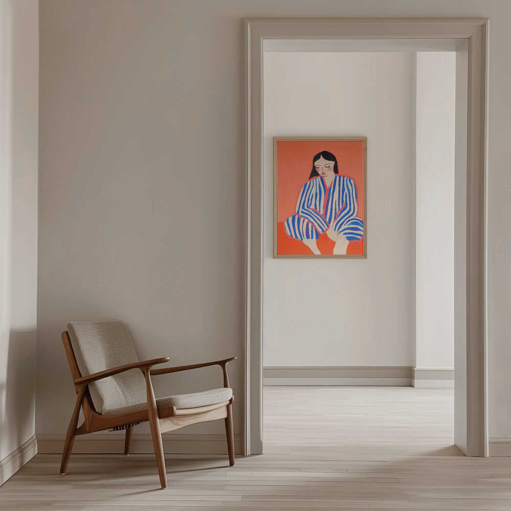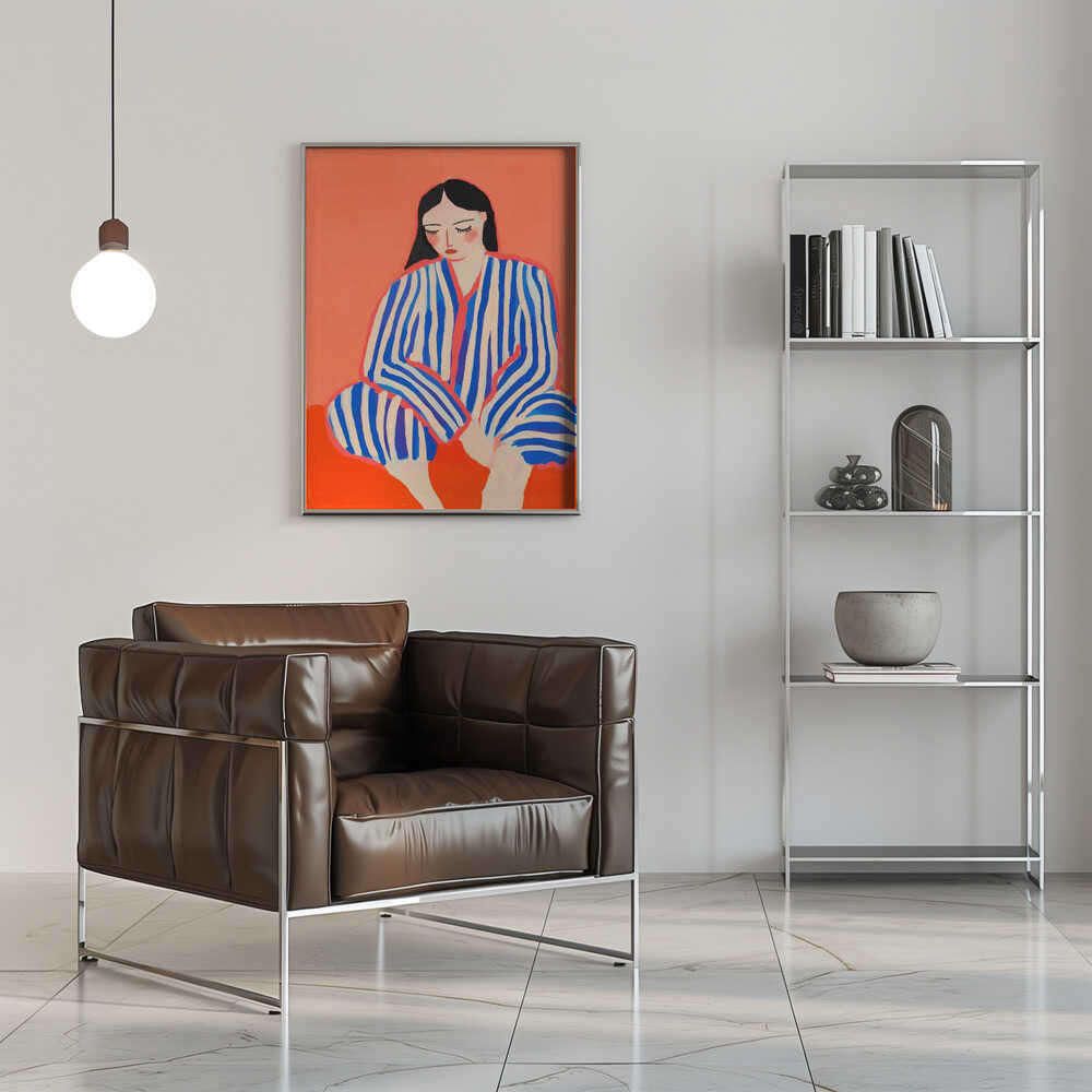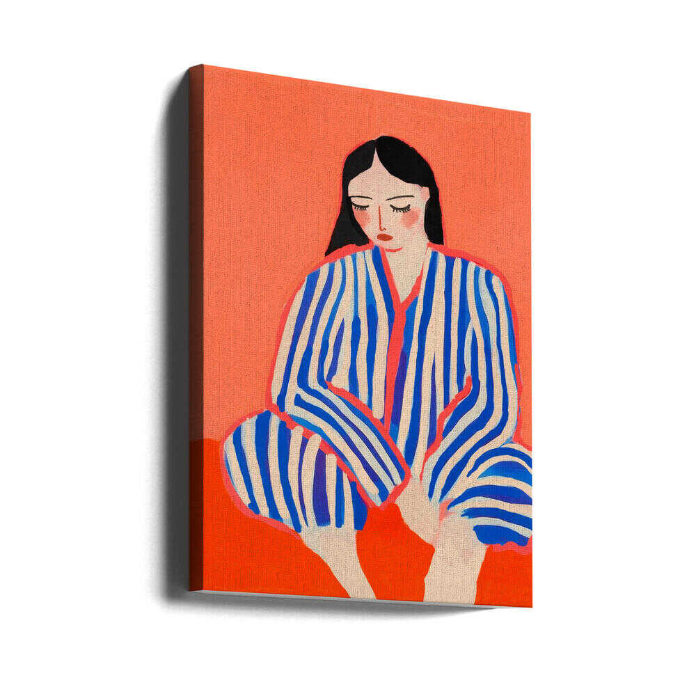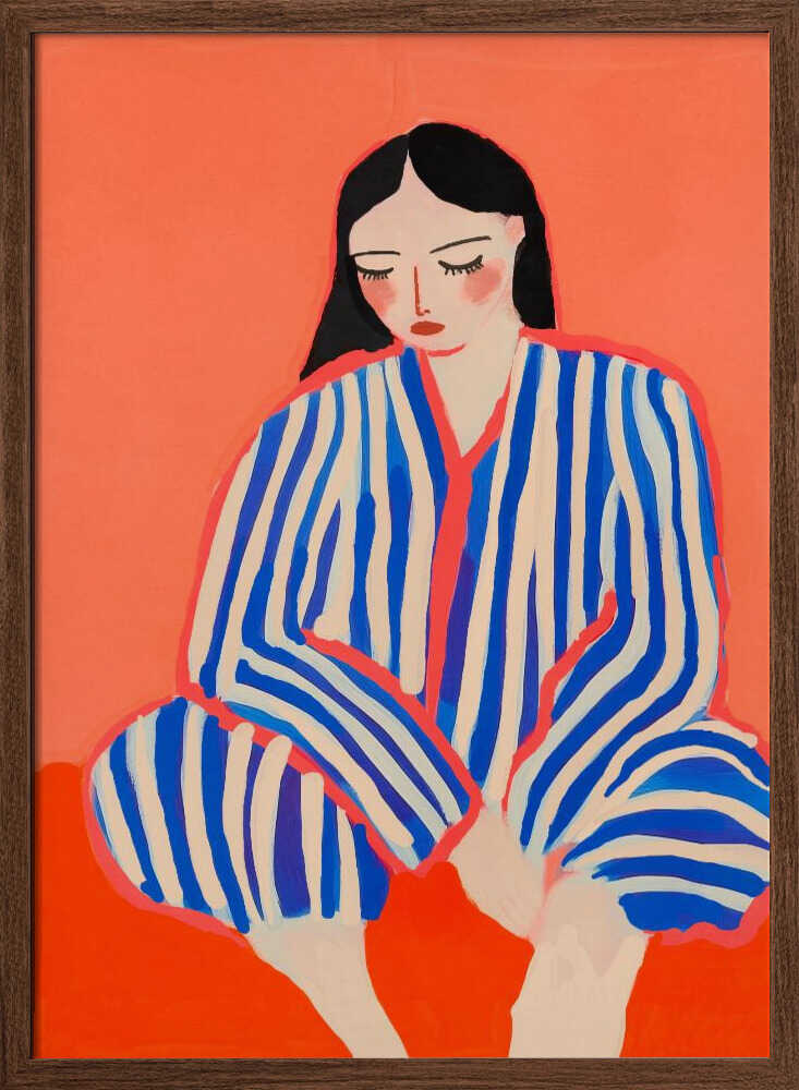 Pensive Woman Striped Dress - Stretched Canvas, Poster or Fine Art Print