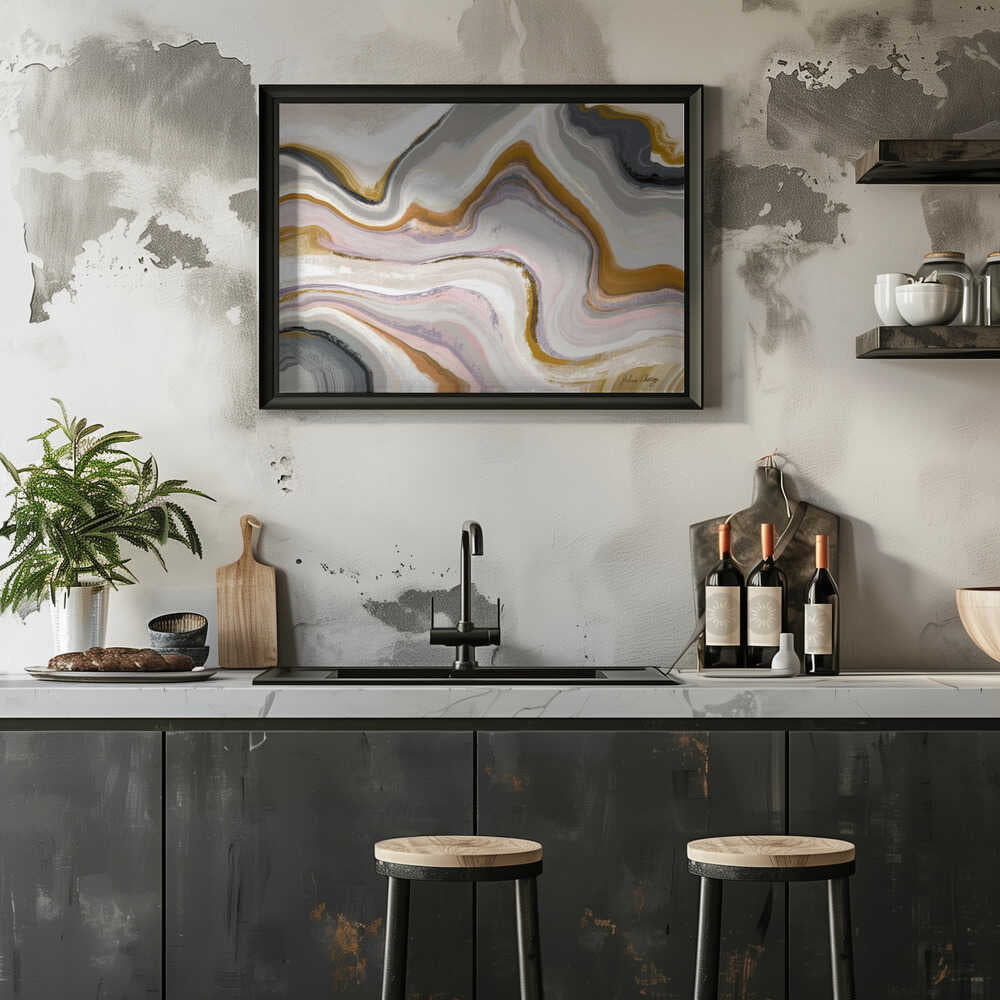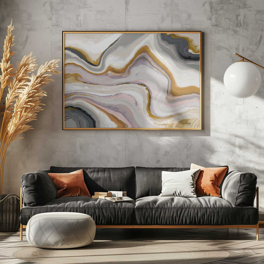 Golden Plum Marble Flow - Stretched Canvas, Poster or Fine Art Print