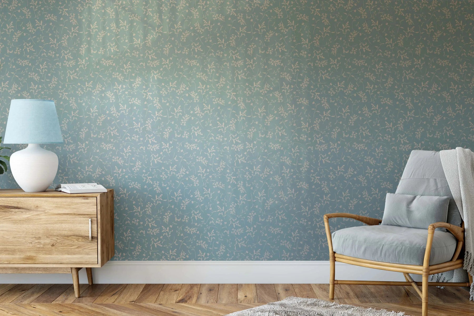 'Lulu In Vintage Blue' - Vintage Blue and Cream Leaf Removable Wallpaper
