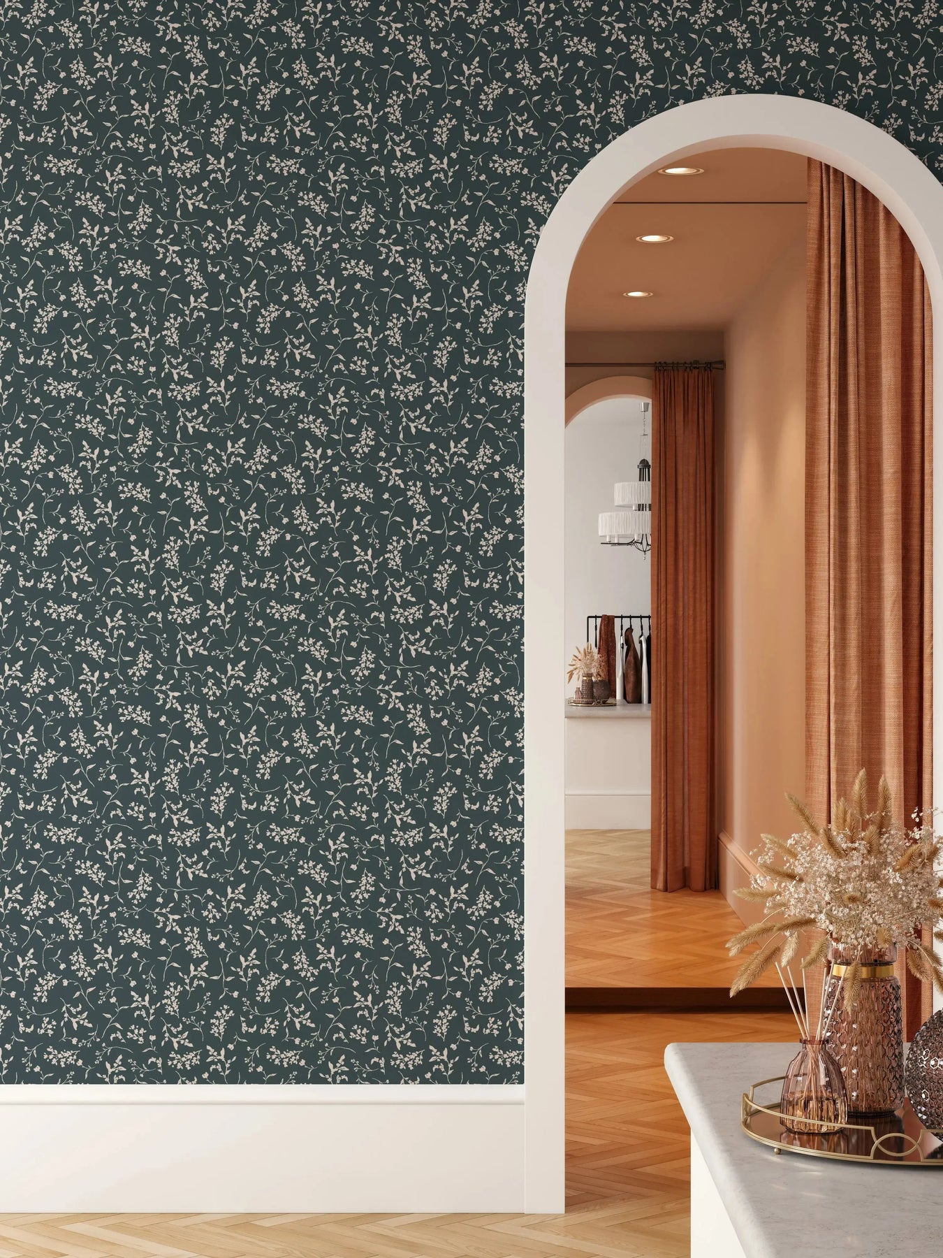 'Lulu In Vintage Green' - Vintage Green and Cream Leaf Removable Wallpaper