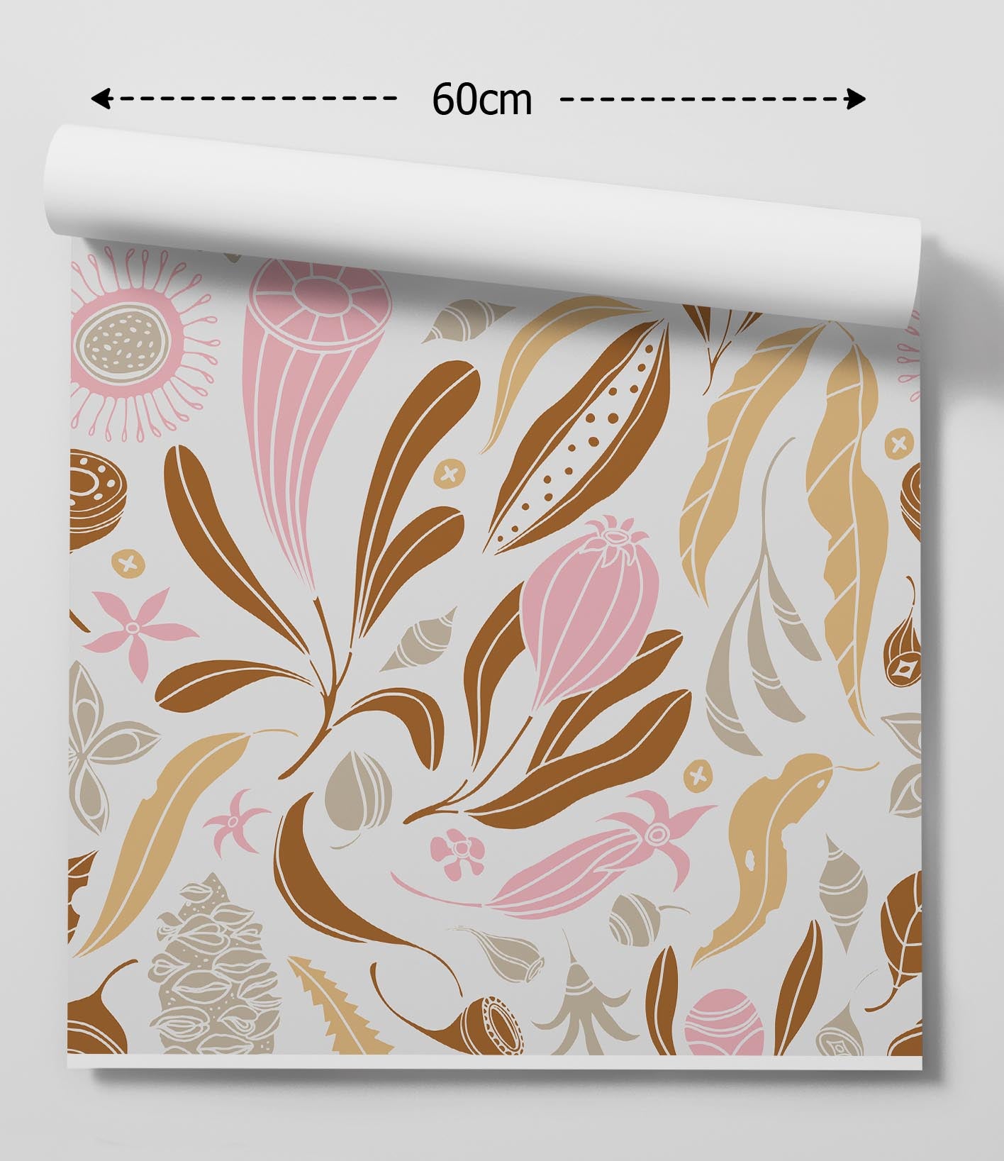 Native Heart Wallpaper In Bohemian Kiss - Australian Native Floral Design- Peel and Stick Removable Wallpaper
