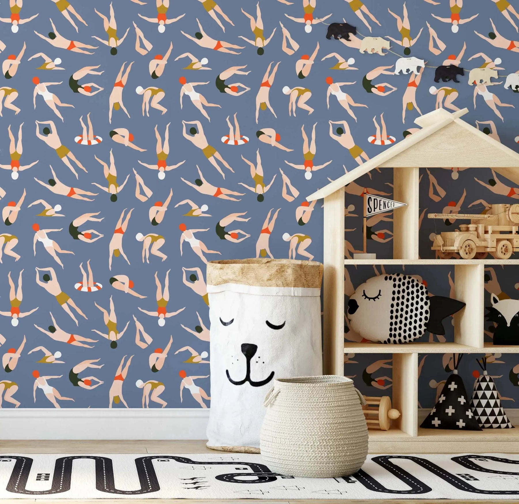 Summer Afternoons At The Pool- Colourful Swimmers Kids Peel and Stick Removable Wallpaper