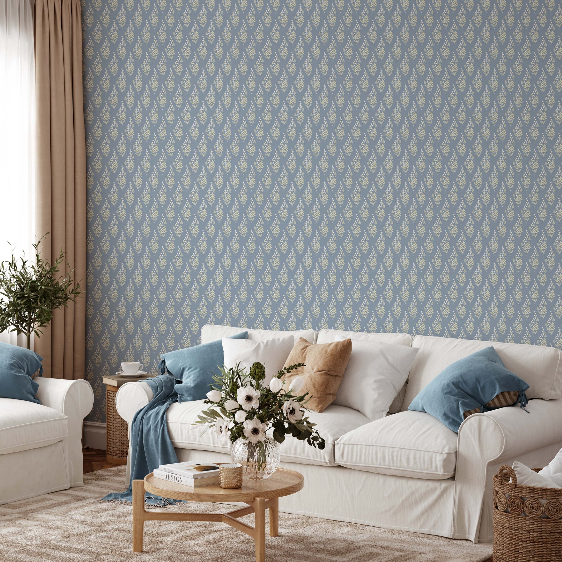 'Sweetheart' Design 1 in BLUE - Blue & Floral Removable Wallpaper