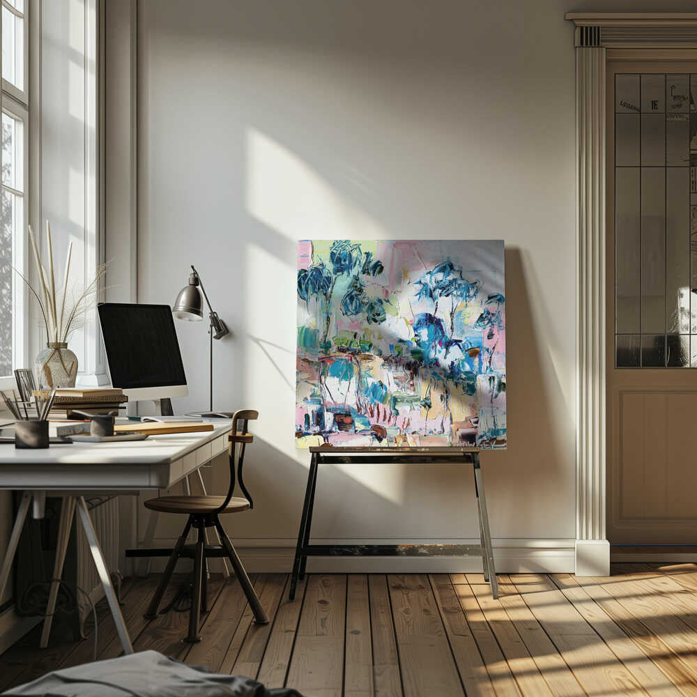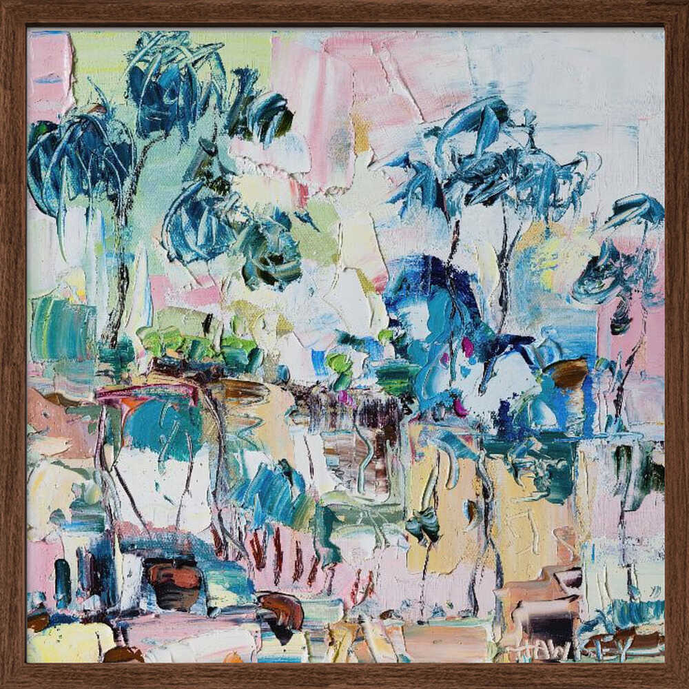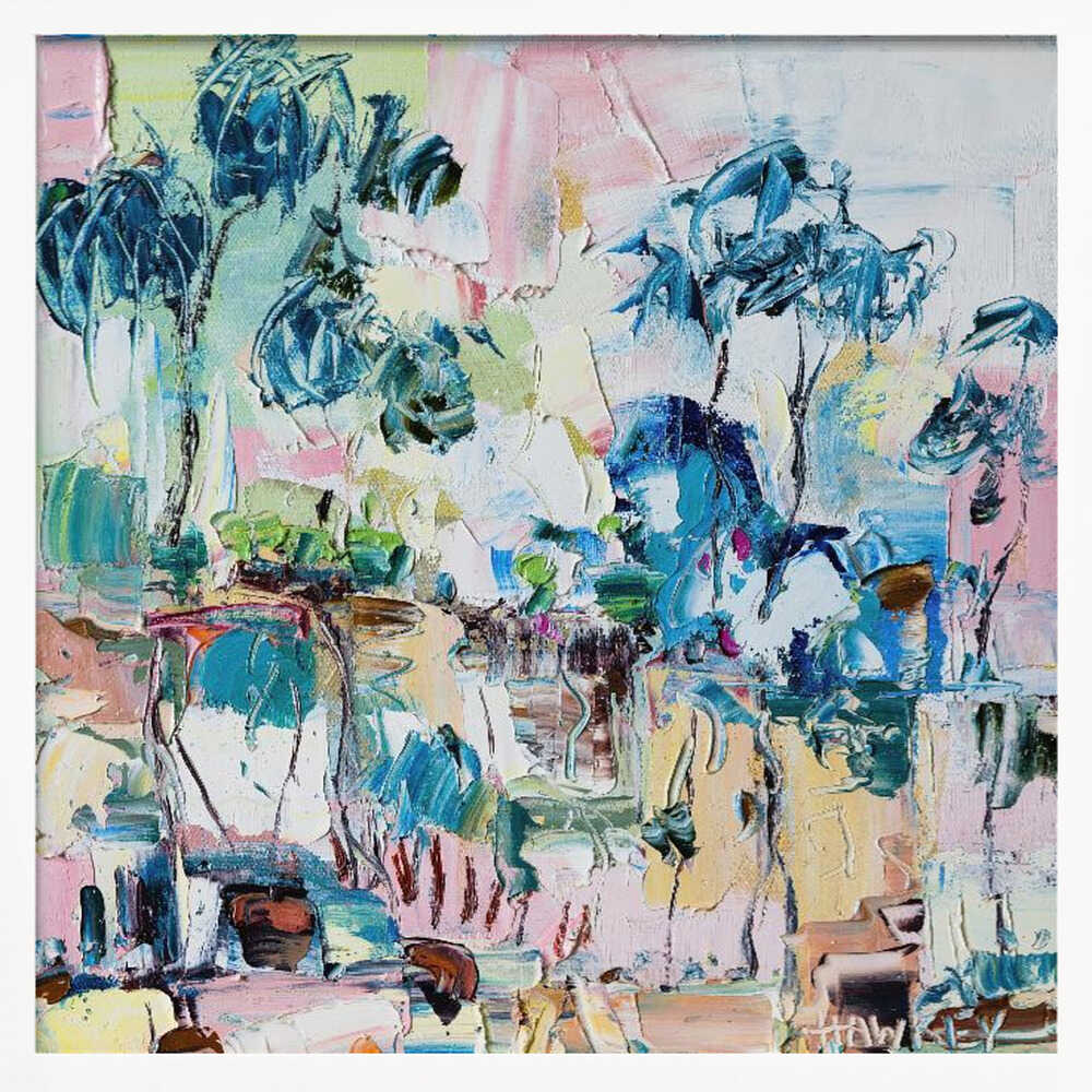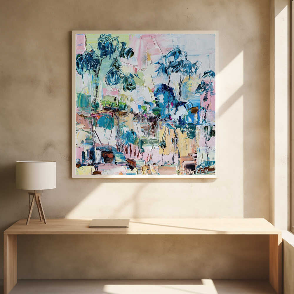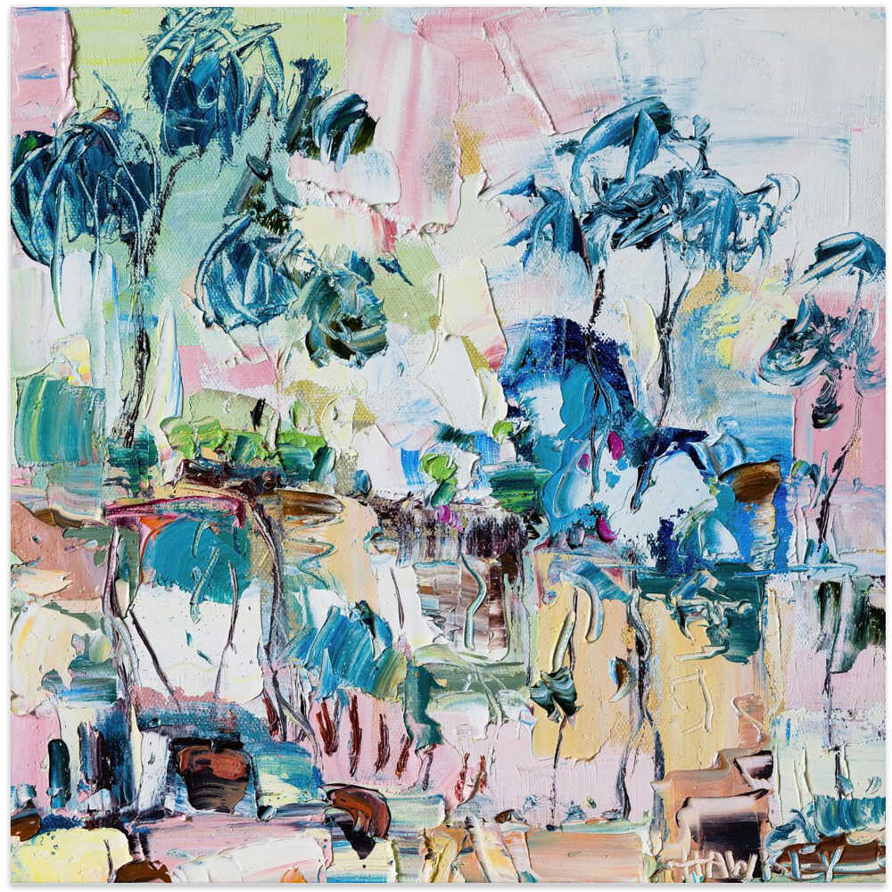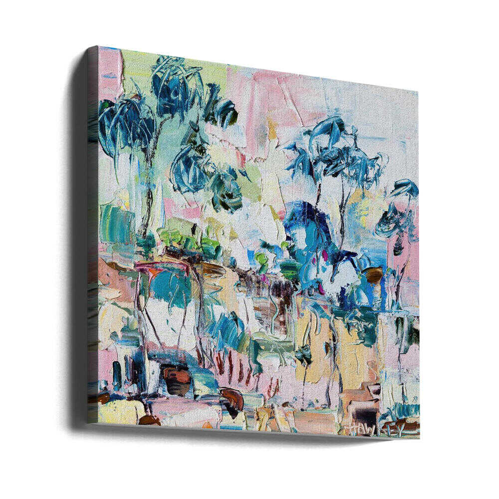 Colorful Eucalyptus Landscape - Square Stretched Canvas, Poster or Fine Art Print by Angela Hawkey
