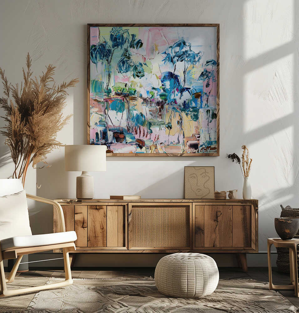 Vibrant Abstract Landscape - Square Stretched Canvas, Poster or Fine Art Print by Angela Hawkey
