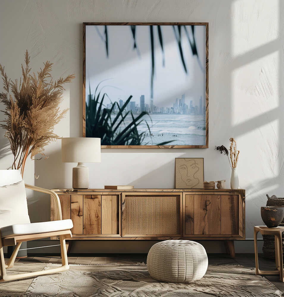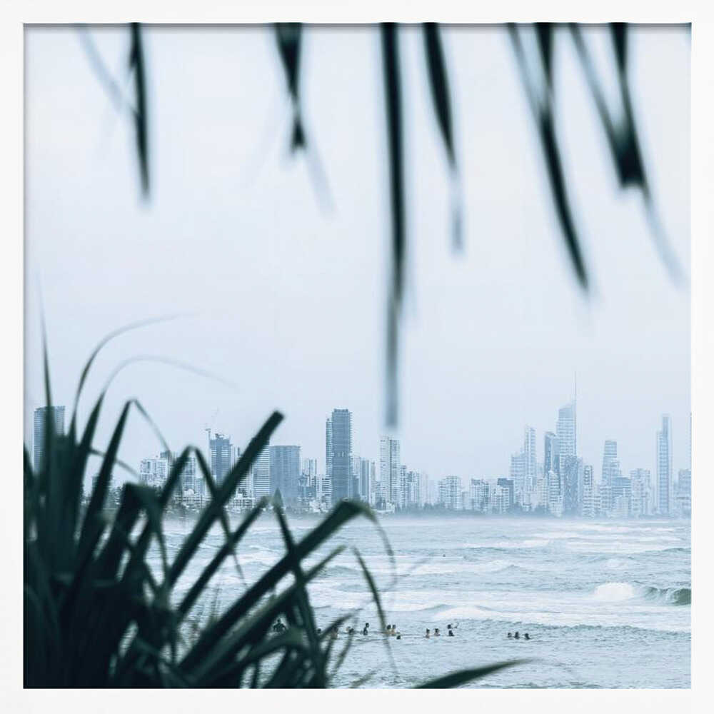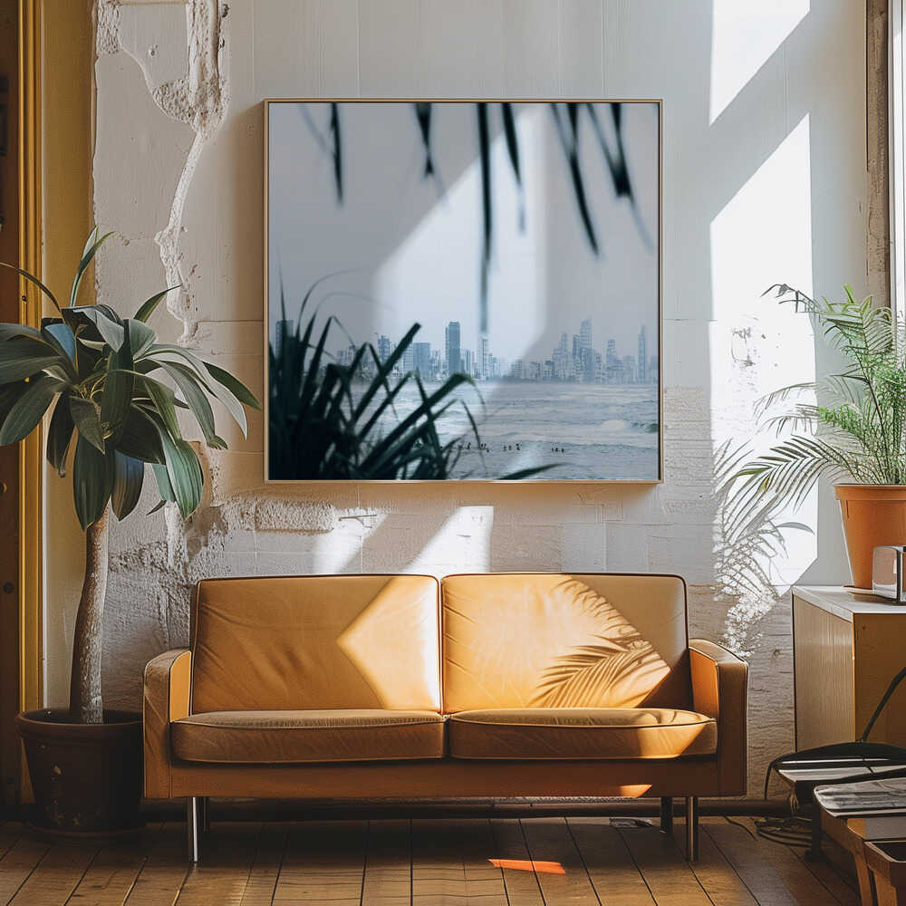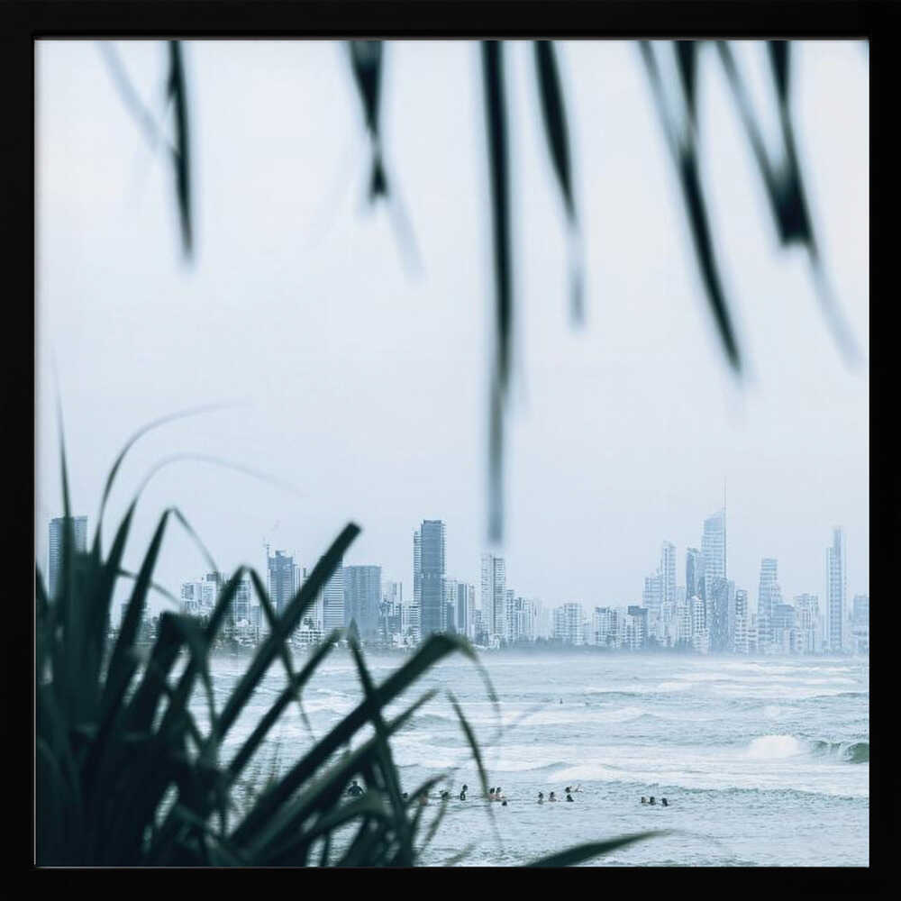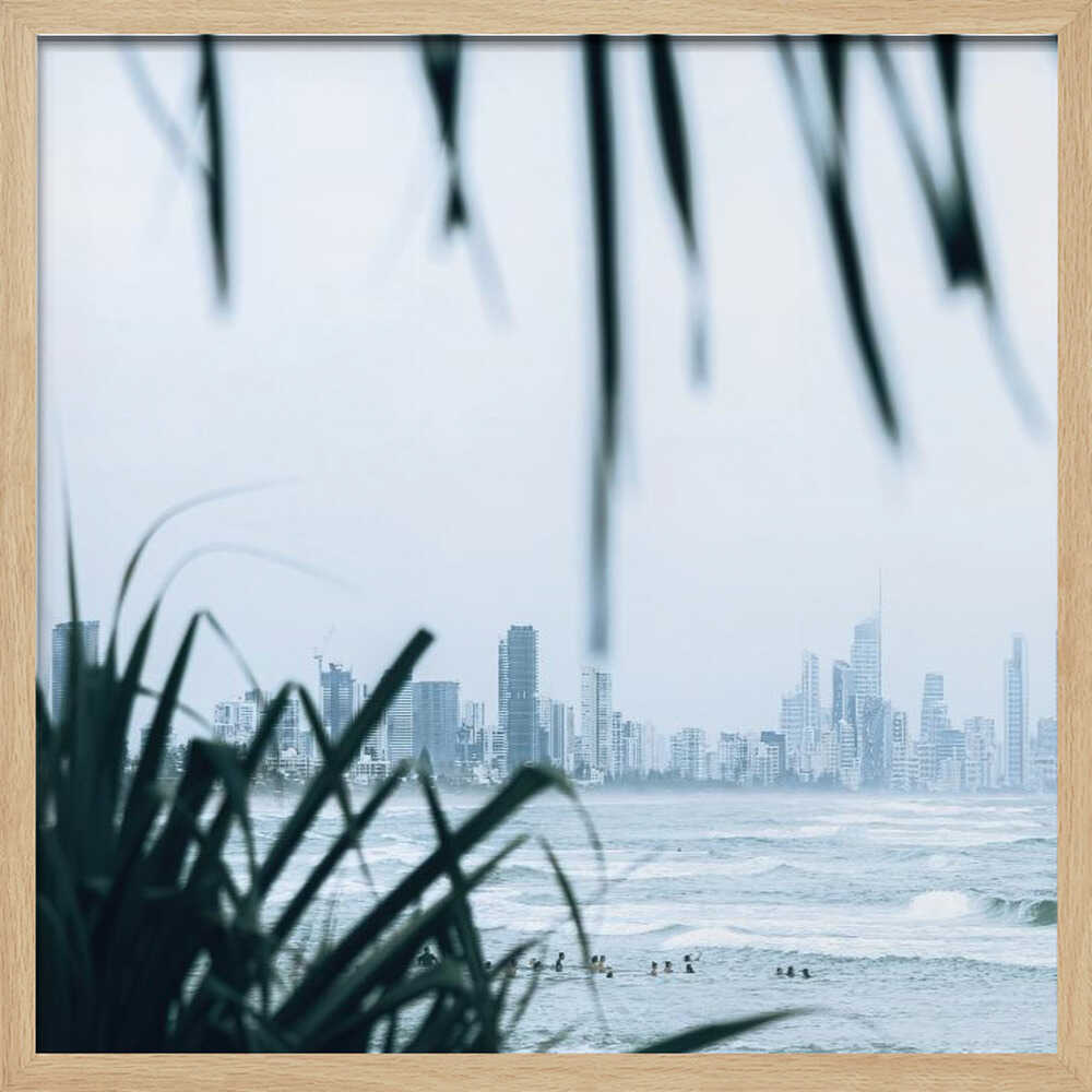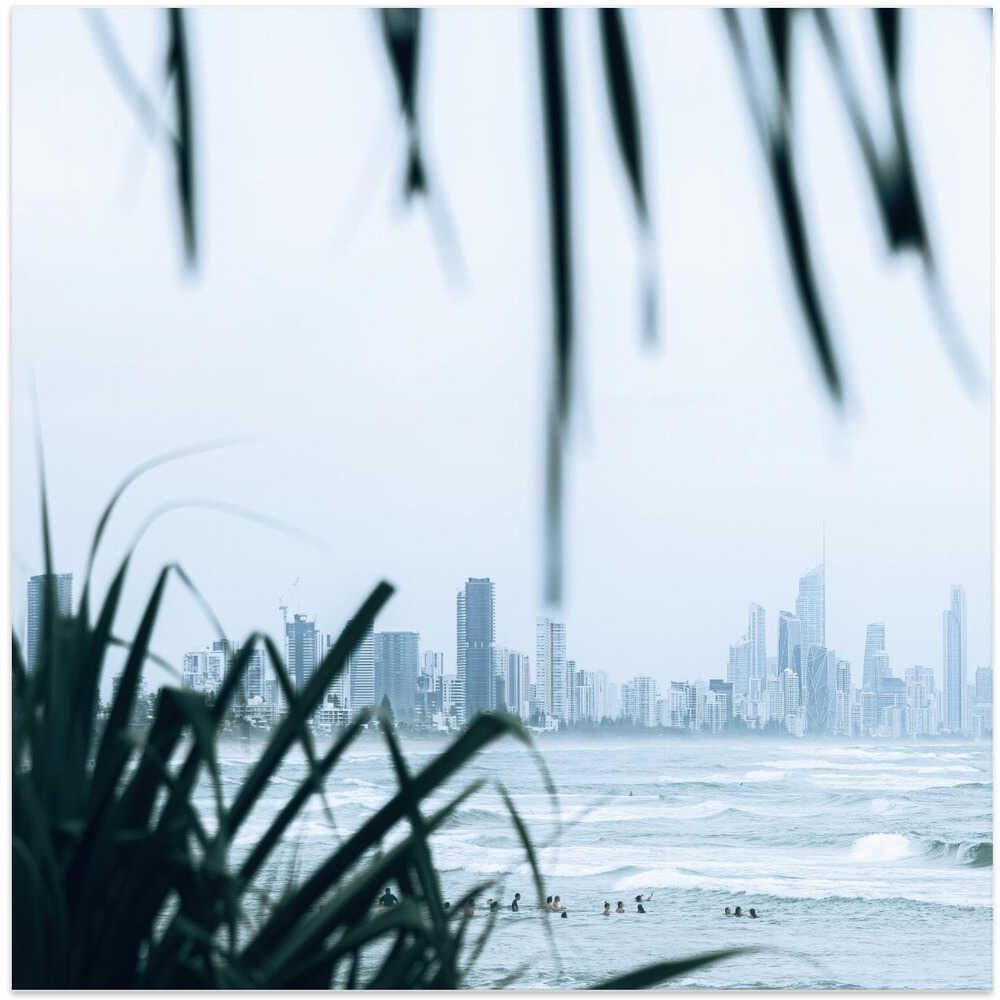 Coastal City Waves - Square Stretched Canvas, Poster or Fine Art Print by Angela Hawkey