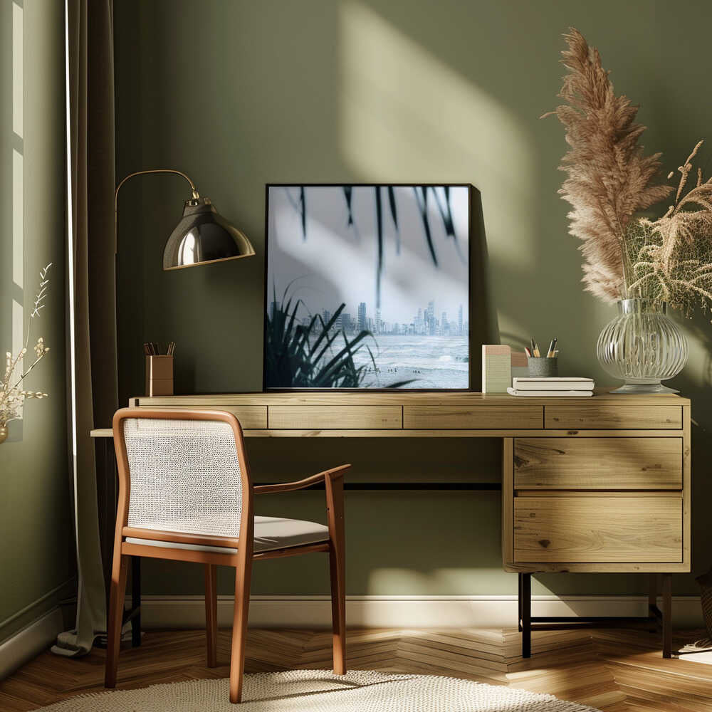 Misty Ocean Cityscape by Angela Hawkey Explore our many print options for Misty Ocean Cityscape by artist Angela Hawkey.