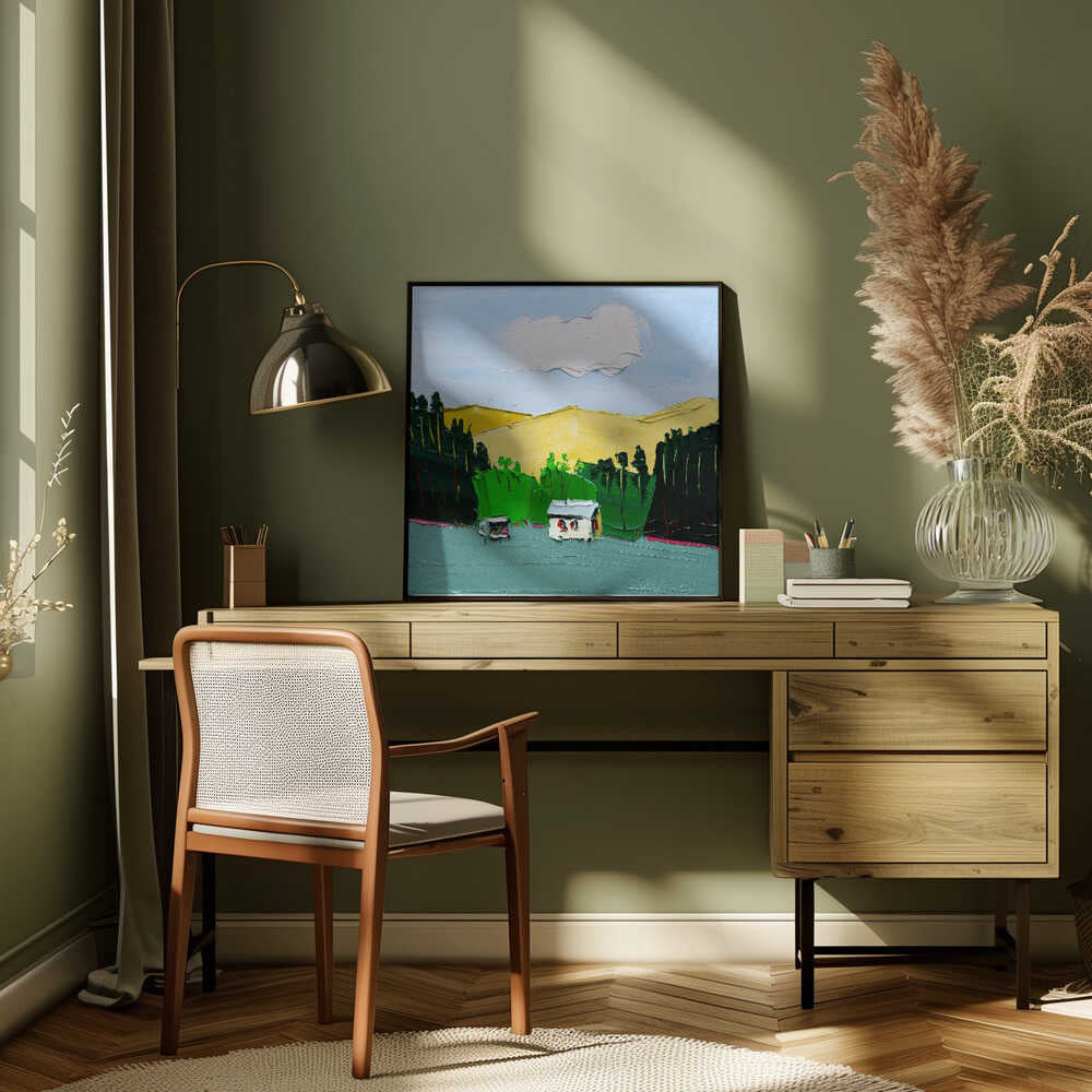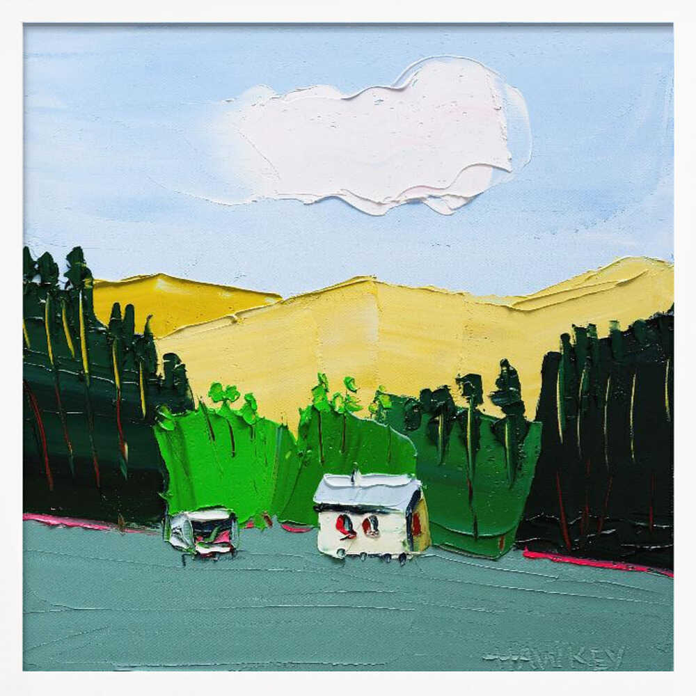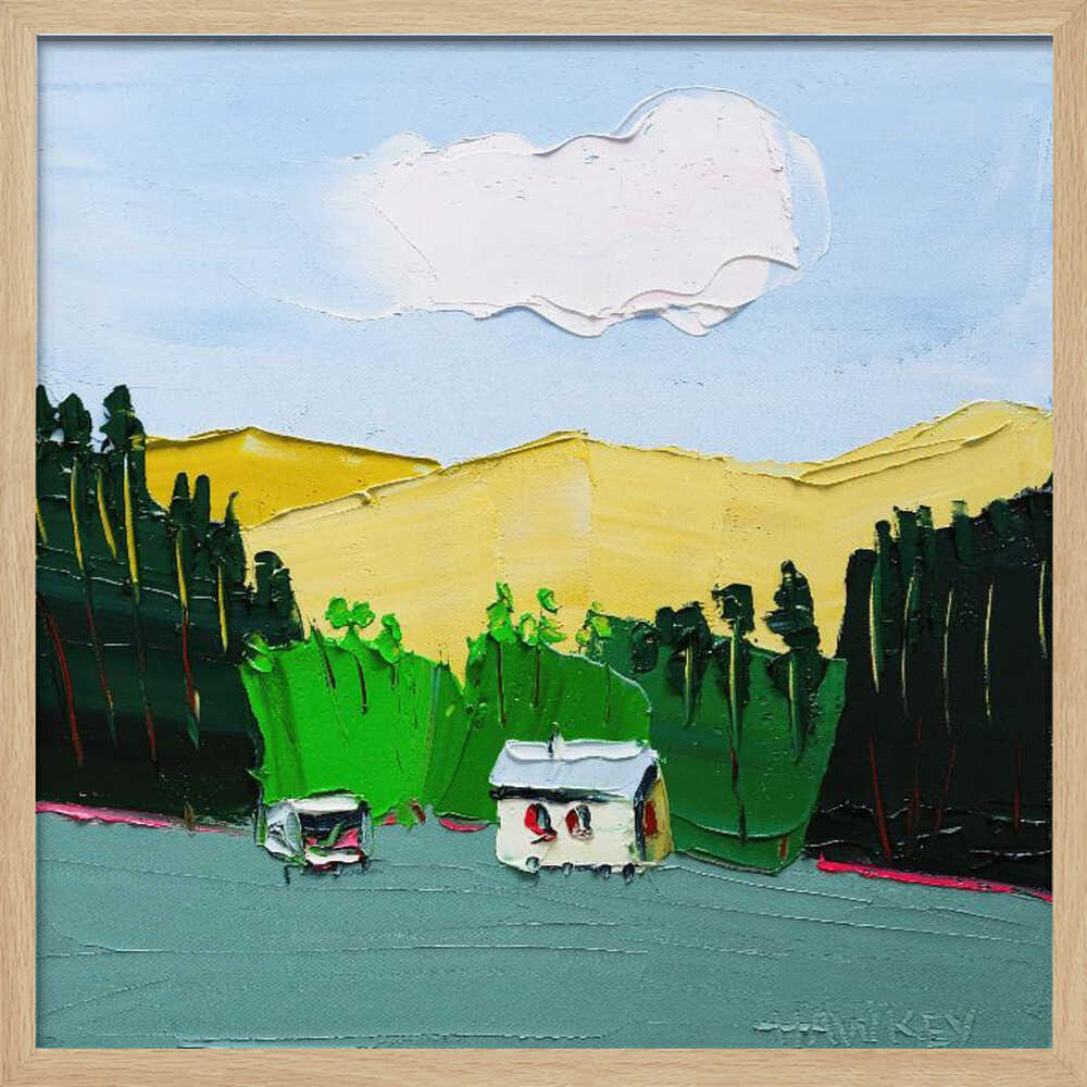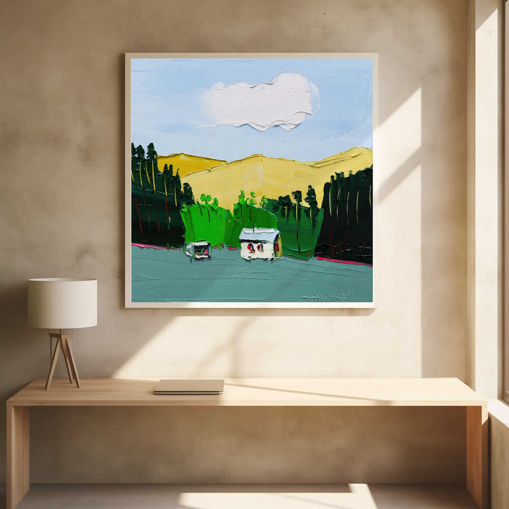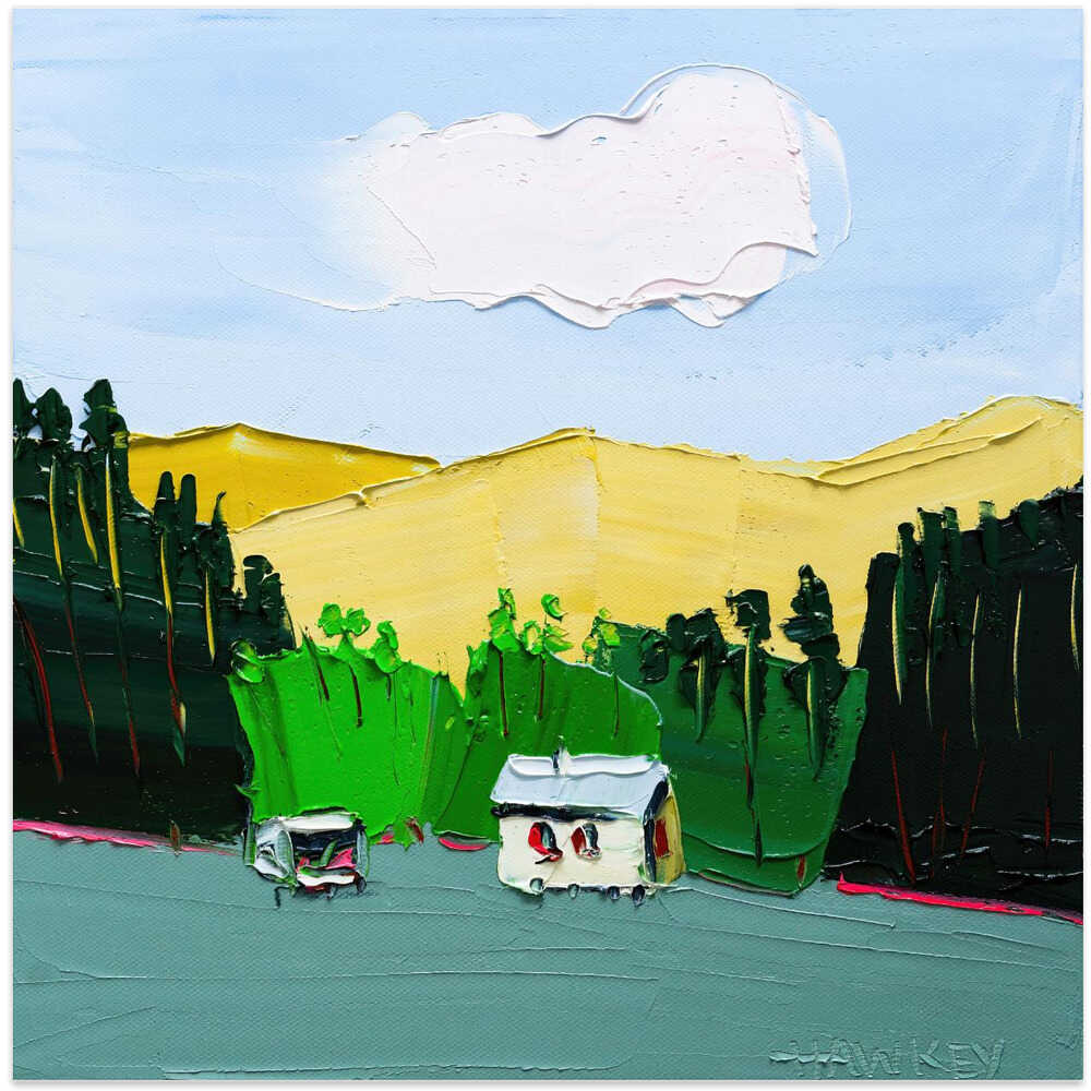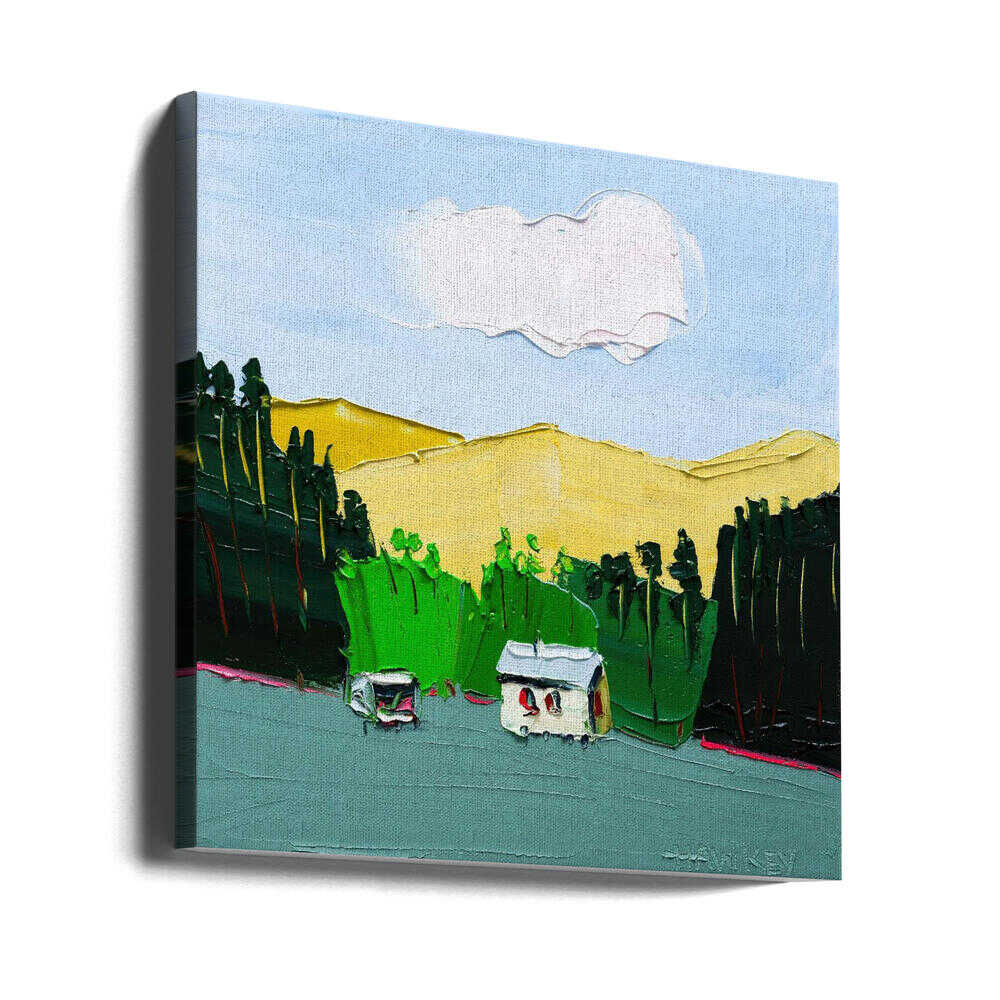 Impasto Countryside Landscape - Square Stretched Canvas, Poster or Fine Art Print by Angela Hawkey