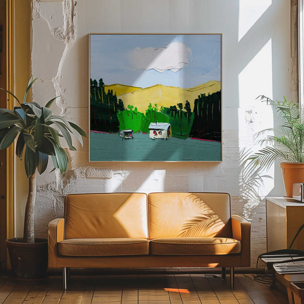 Vibrant Textured Landscape - Square Stretched Canvas, Poster or Fine Art Print by Angela Hawkey