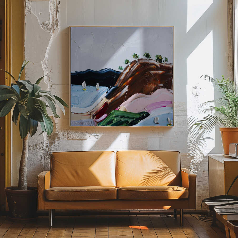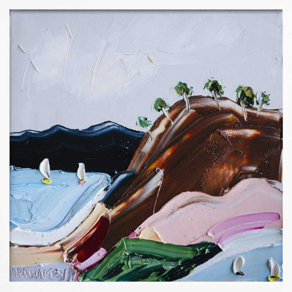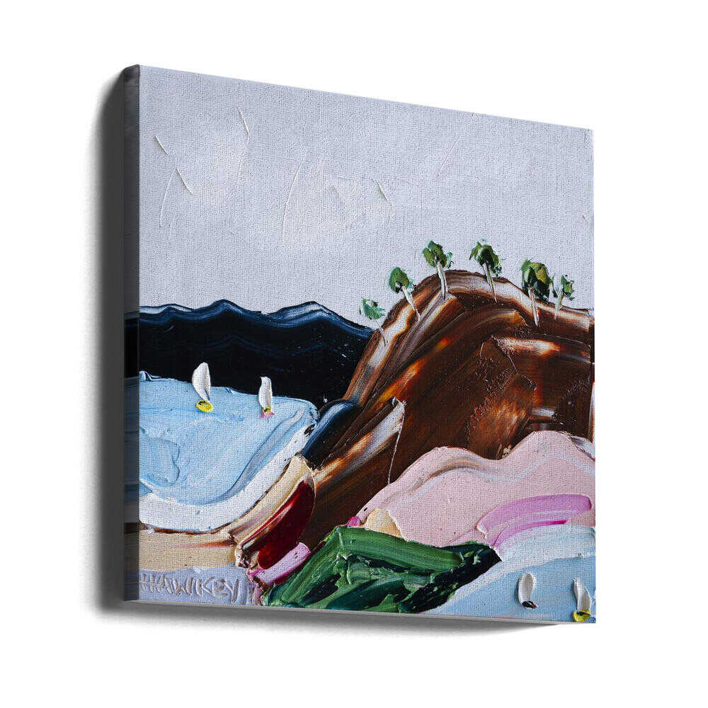 Vibrant Seaside Hills - Square Stretched Canvas, Poster or Fine Art Print by Angela Hawkey