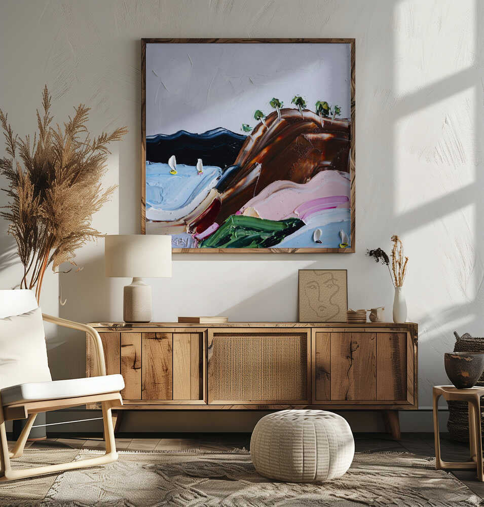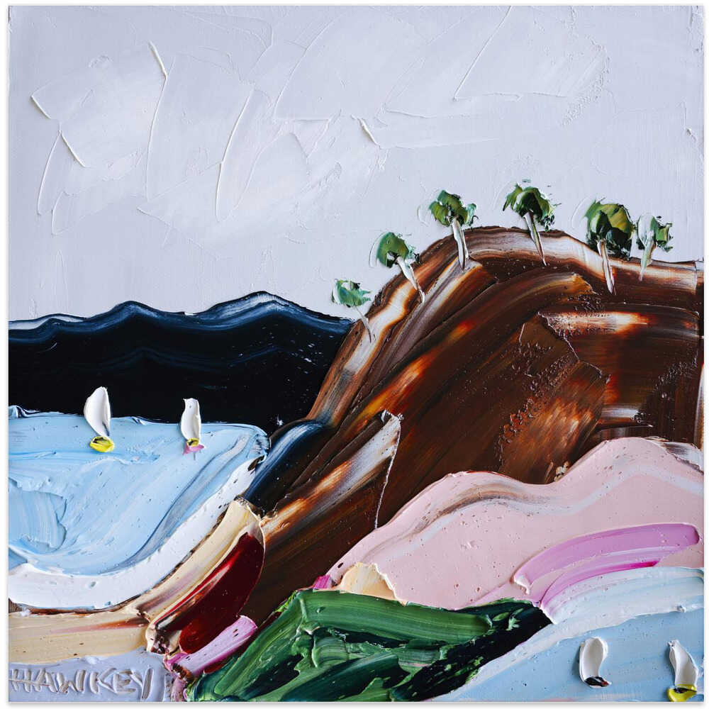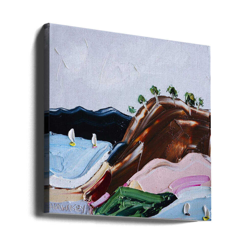 Vibrant Seaside Hills - Square Stretched Canvas, Poster or Fine Art Print by Angela Hawkey
