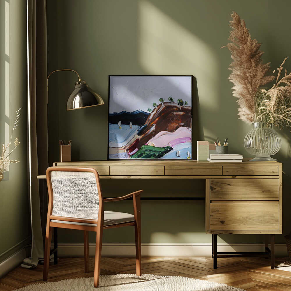 Vivid Abstract Landscape - Square Stretched Canvas, Poster or Fine Art Print by Angela Hawkey