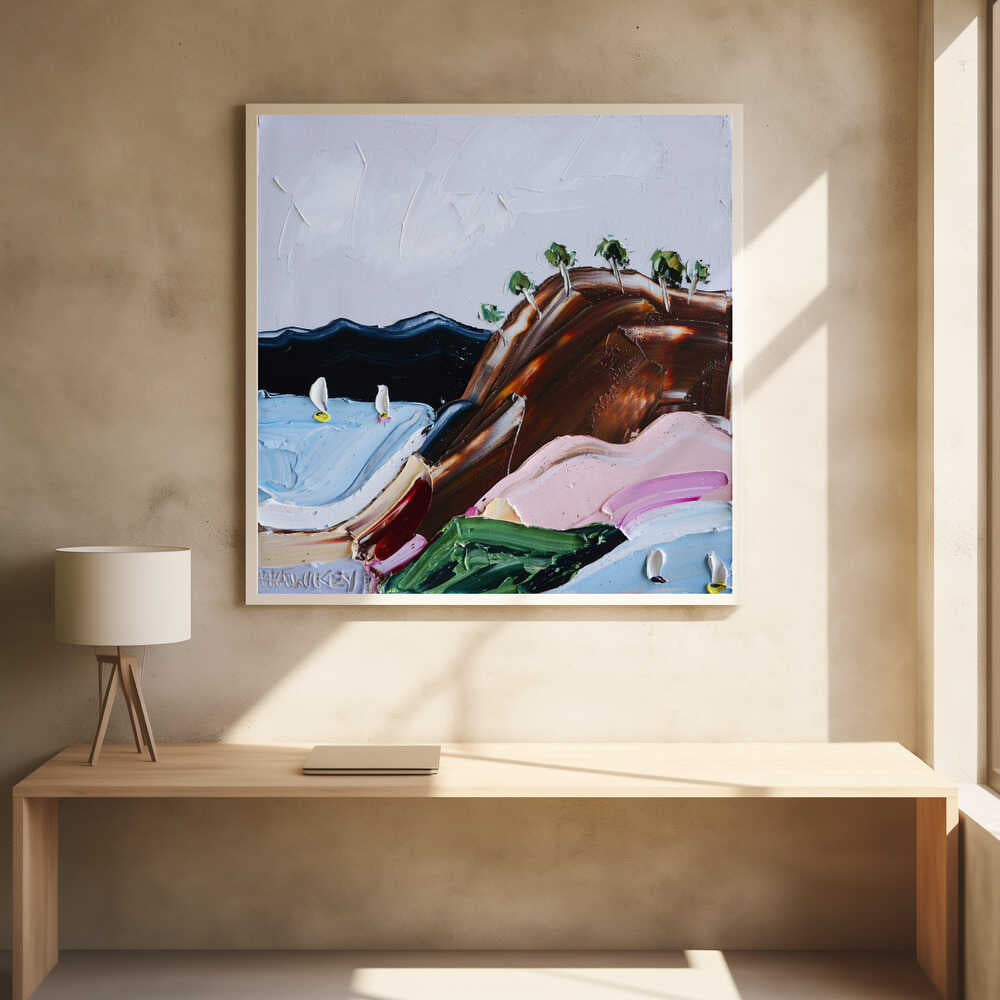 Colorful Coastal Bay - Square Stretched Canvas, Poster or Fine Art Print by Angela Hawkey