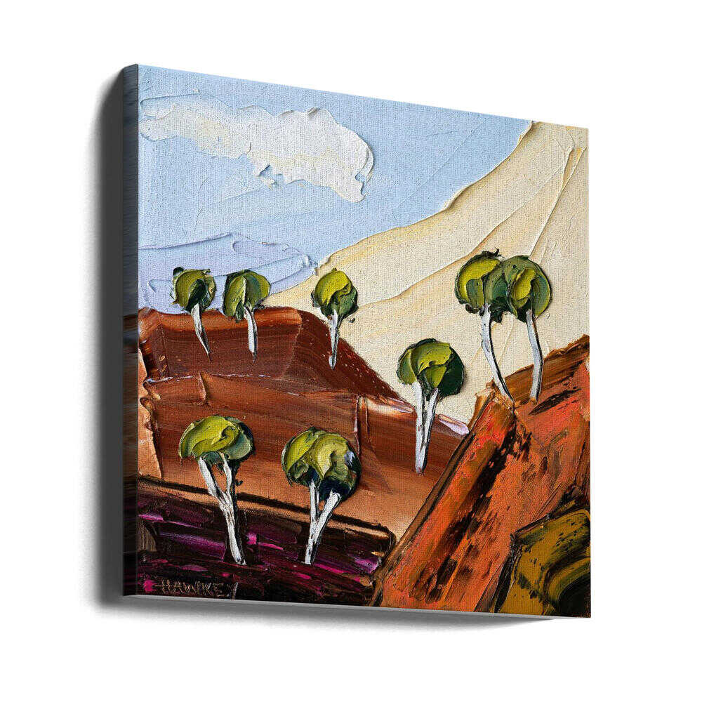 Colorful Eucalyptus Landscape - Square Stretched Canvas, Poster or Fine Art Print by Angela Hawkey