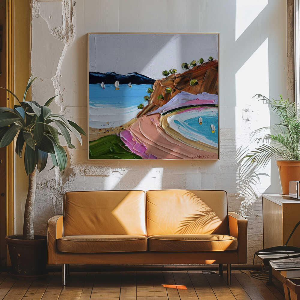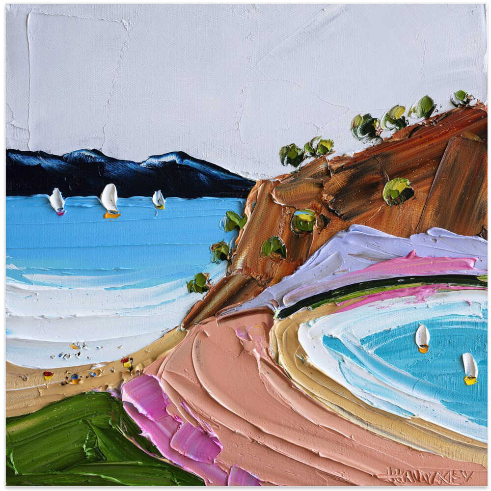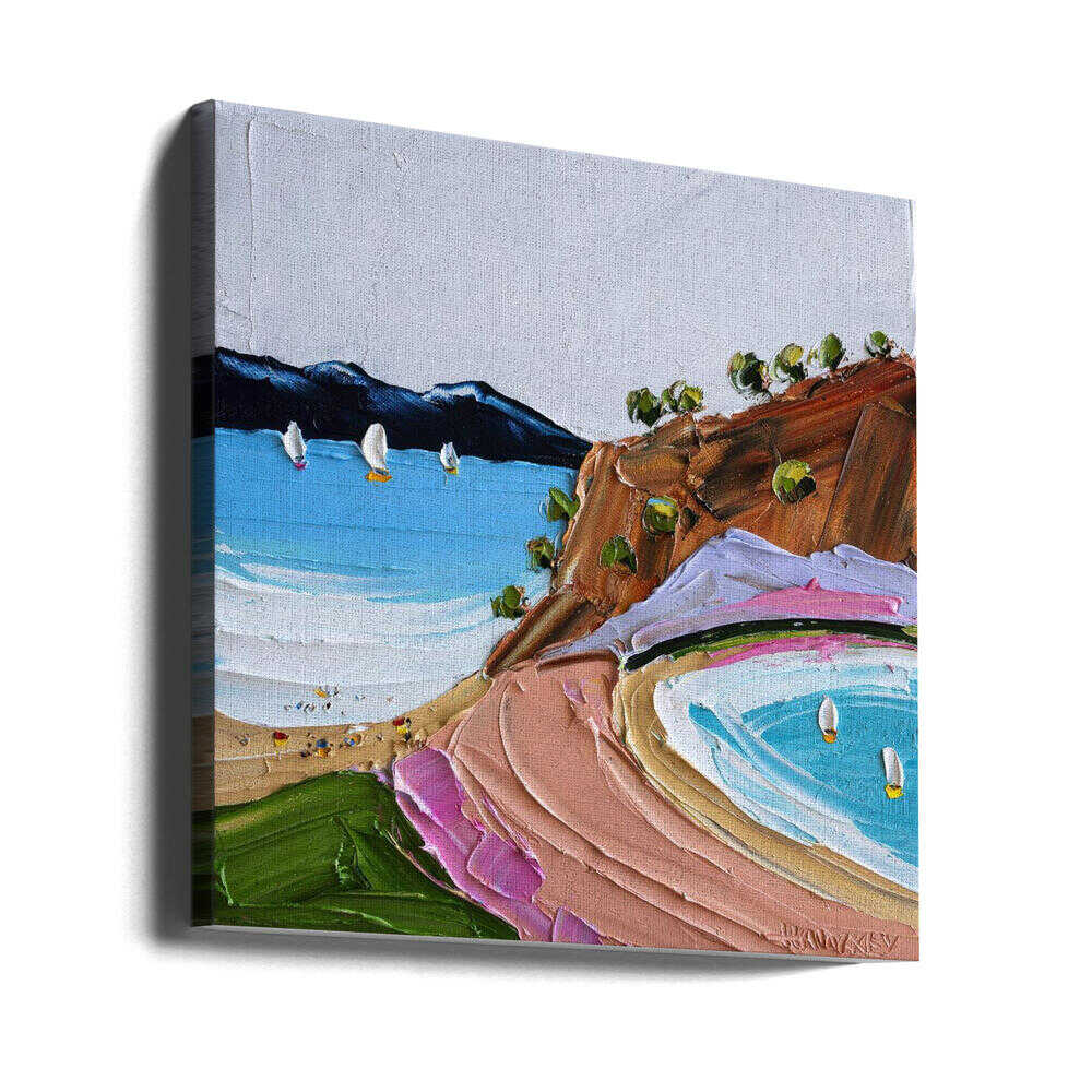 Colorful Coastal Bay - Square Stretched Canvas, Poster or Fine Art Print by Angela Hawkey