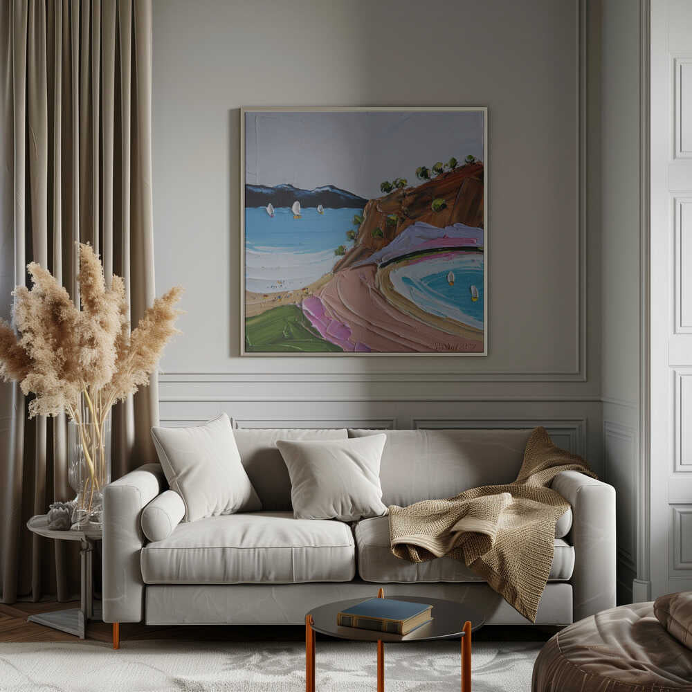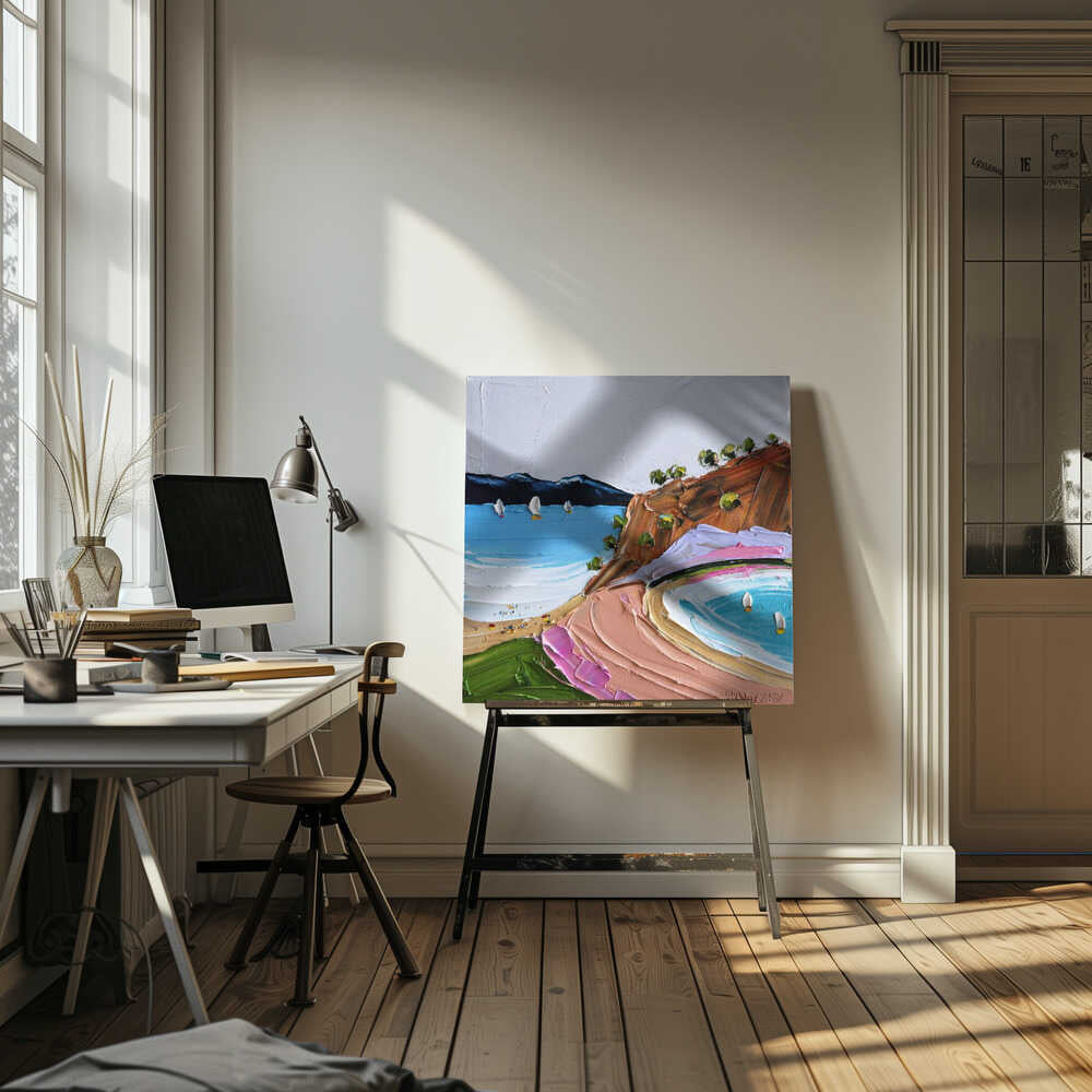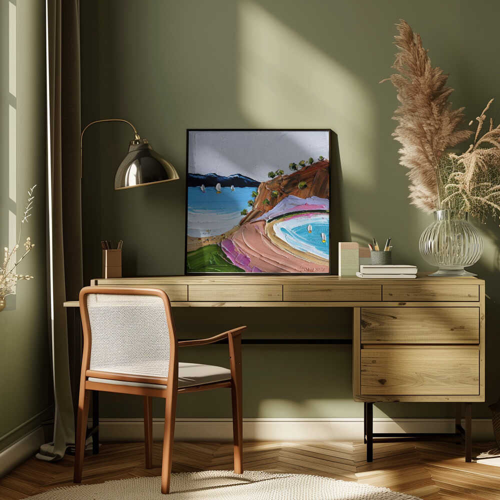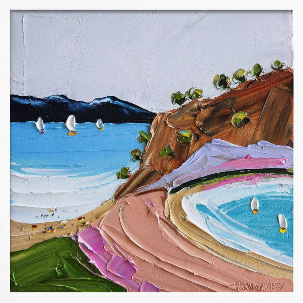Colorful Coastal Bay - Square Stretched Canvas, Poster or Fine Art Print by Angela Hawkey