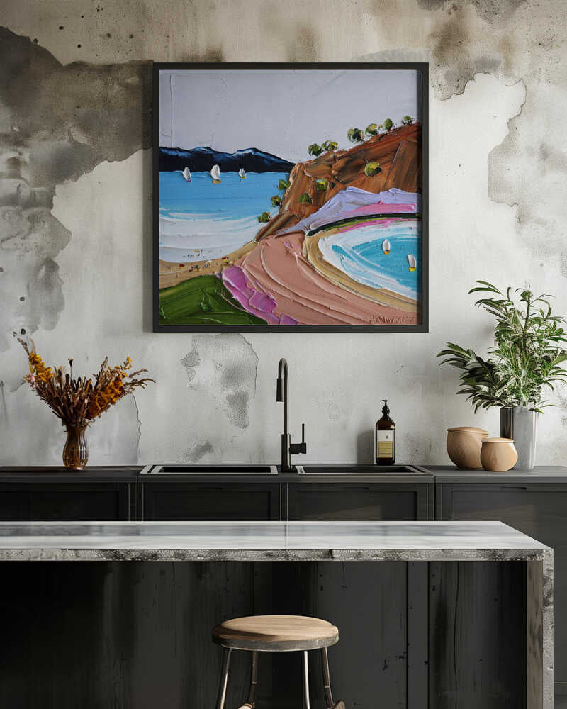 Vibrant Coastal View - Square Stretched Canvas, Poster or Fine Art Print by Angela Hawkey