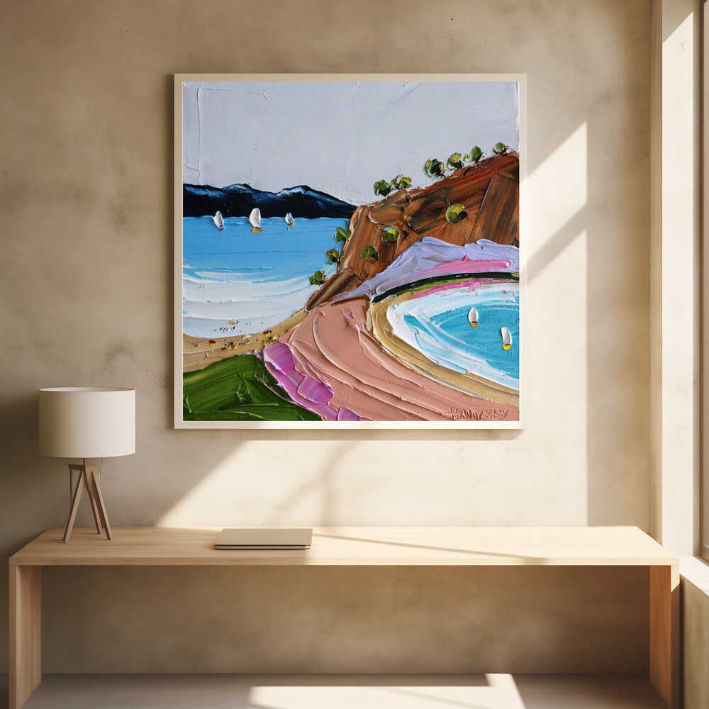 Vibrant Coastal Bay - Square Stretched Canvas, Poster or Fine Art Print by Angela Hawkey
