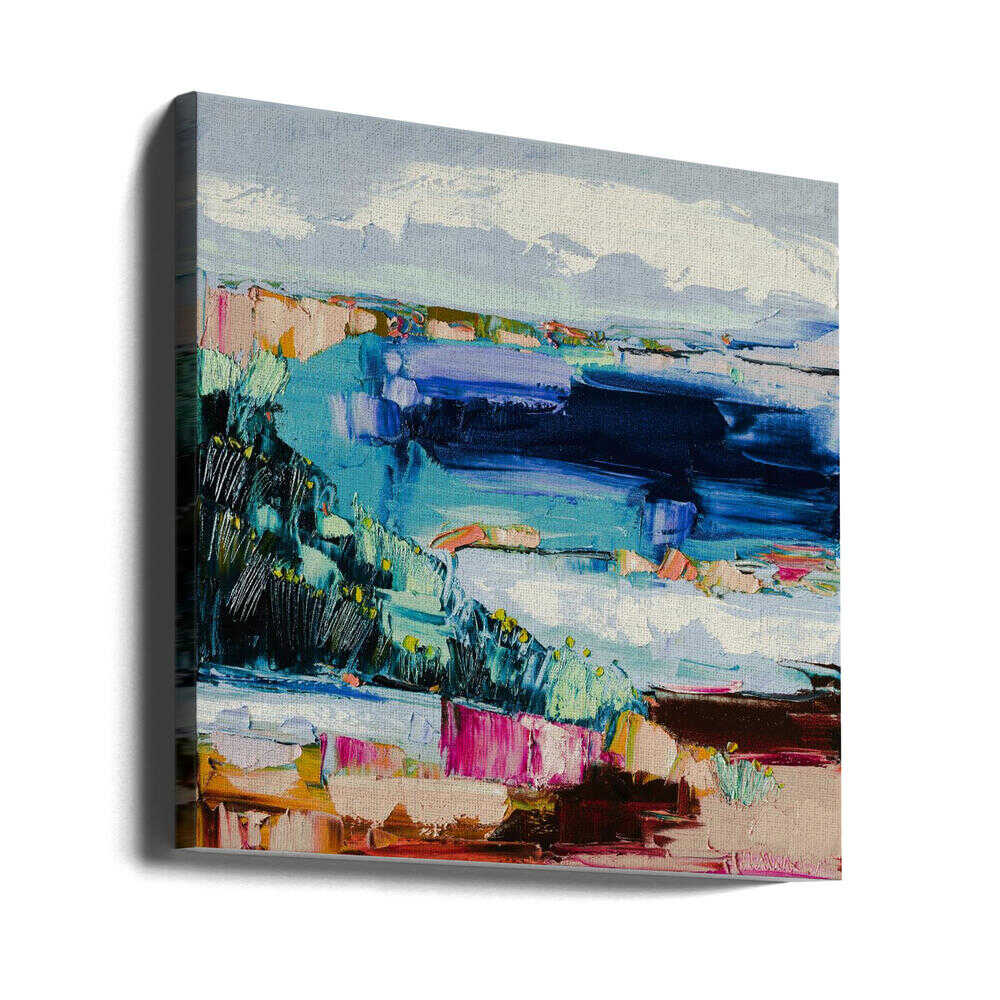 Colorful Textured Seascape - Square Stretched Canvas, Poster or Fine Art Print by Angela Hawkey