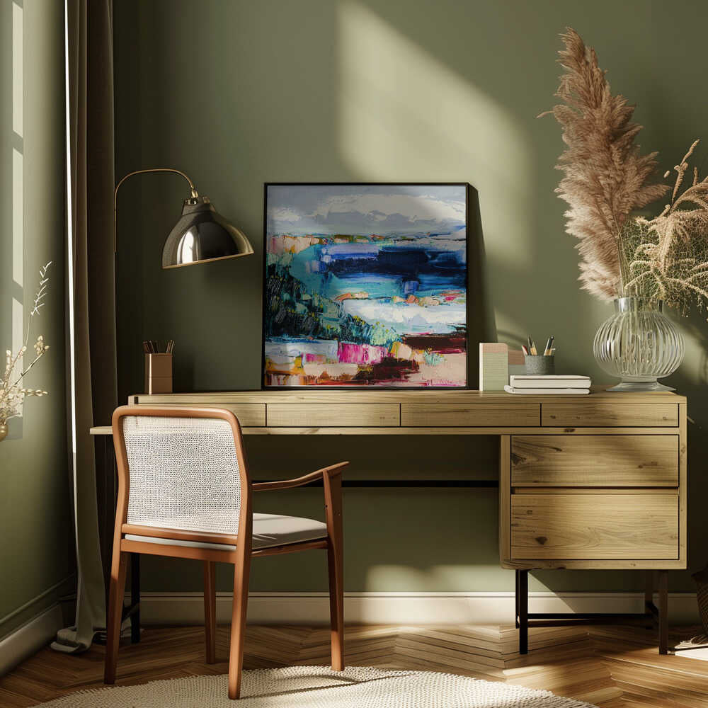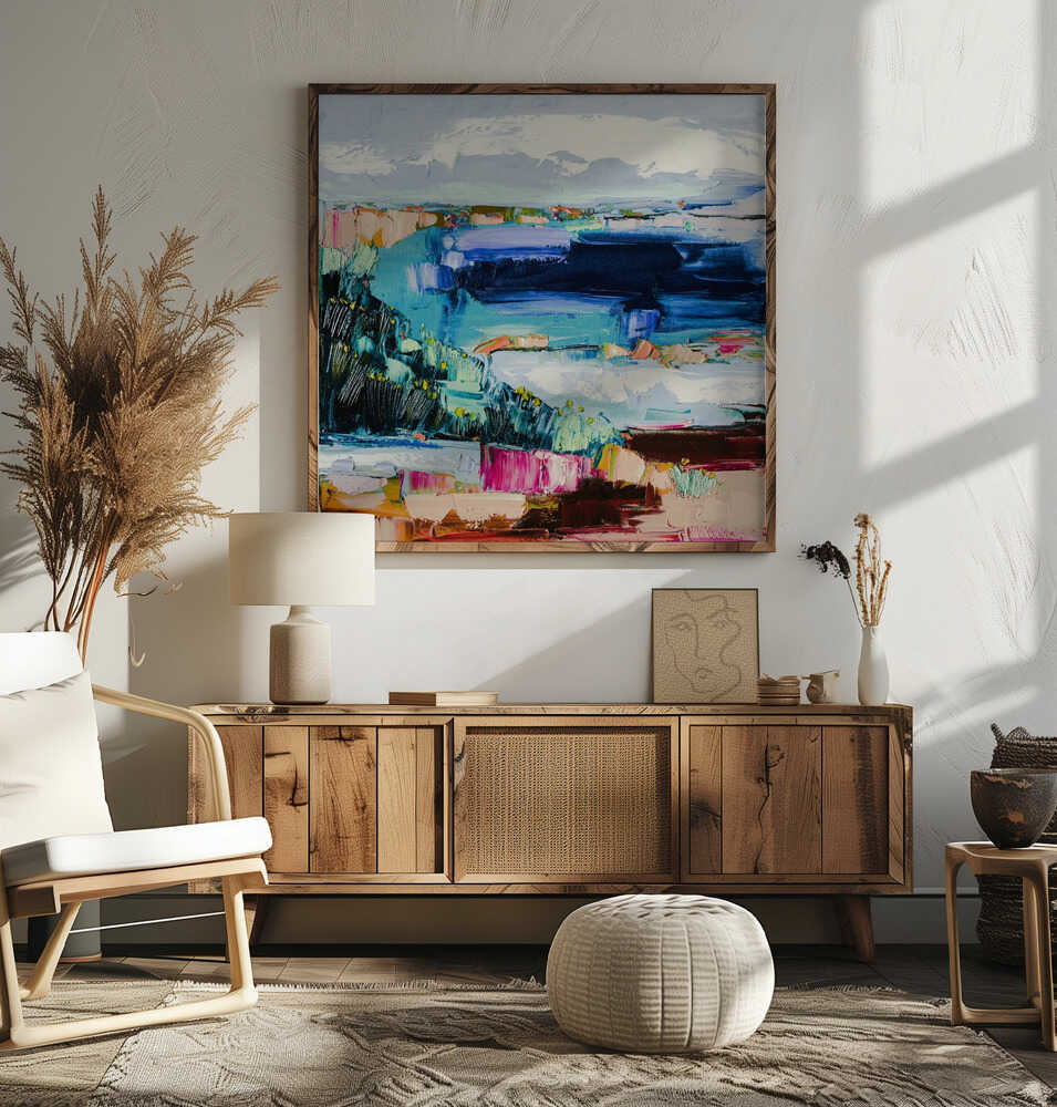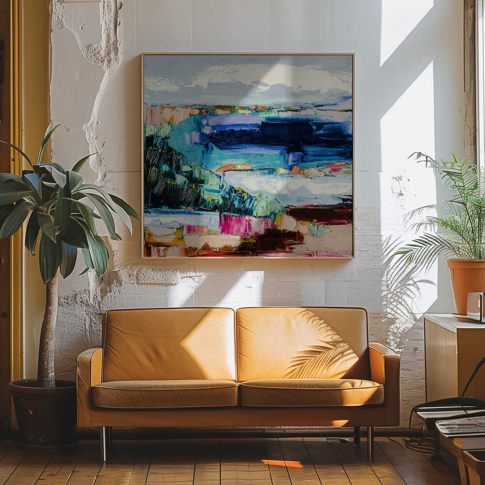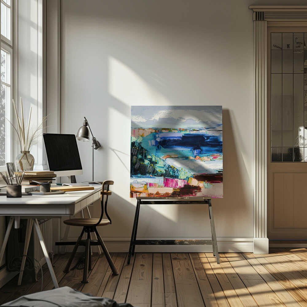 Vivid Abstract Landscape - Square Stretched Canvas, Poster or Fine Art Print by Angela Hawkey